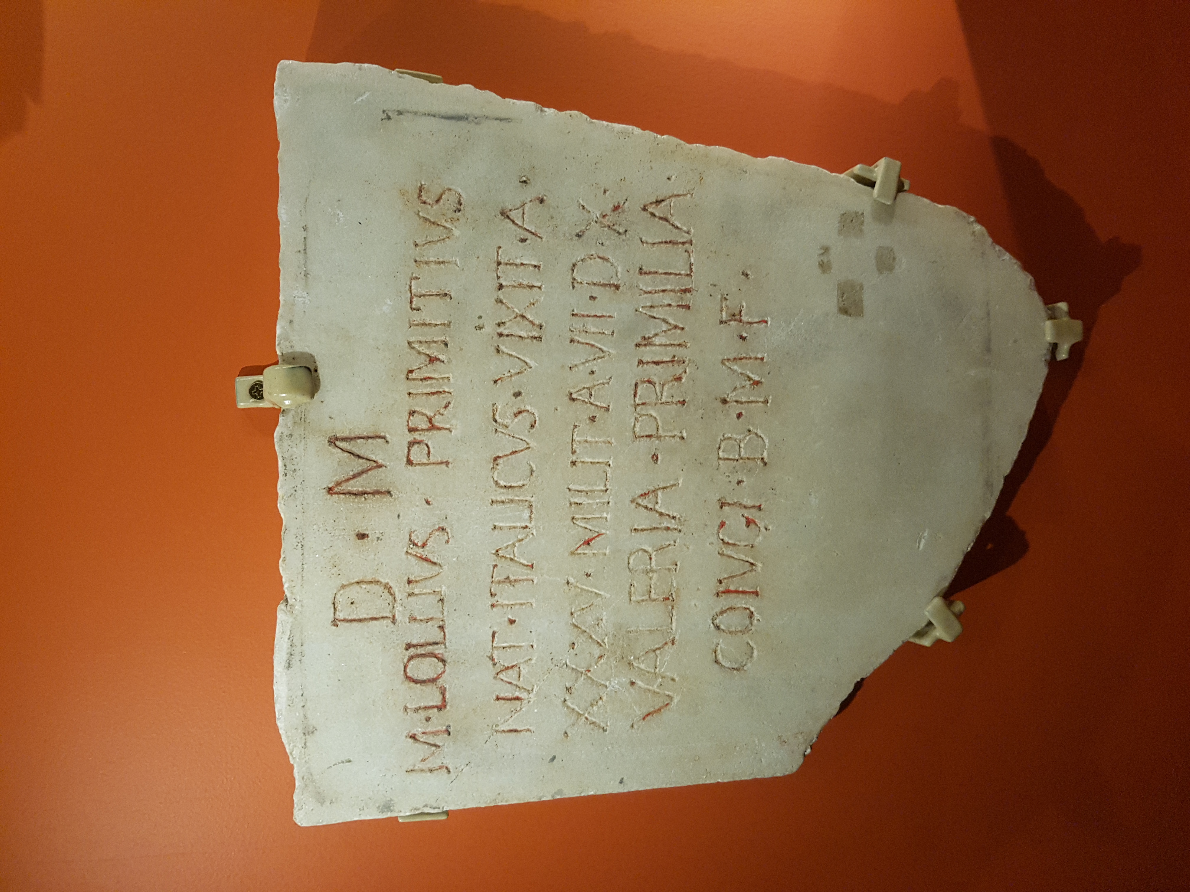 Tombstone of a sailor in the Roman fleet at Misenum, raised by his wife Valeria Primilia. It records that he was Italian born (Roman citizen) and that he died at the age of 35 after having served in the navy for seven years and 10 days. 2nd century CE. Nicholson Museum, Sydney University Museums, (photo taken at the National Maritime Museum, Sydney Australia)