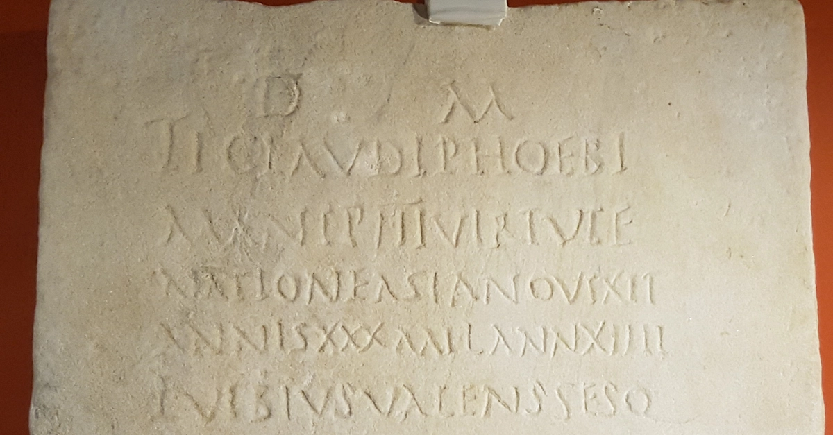 Tombstone of a sailor in the Roman fleet at Misenum. 2nd century CE. It records that he died aged 30 and was originally from the Roman province of Asia, roughly today's western Turkey. (Museo dei Campi Flegrei, Naples, Italy, on display at the National Maritime Museum, Sydney)