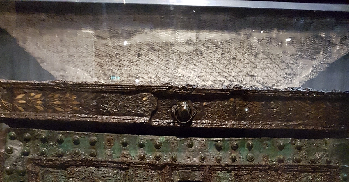 An arca was a lockable strongbox for storing money and other valuables. Often placed in the atrium, the public area of the house, as a display of wealth and power. This one is decorated with a worshipper offering a sacrifice at an altar to the cult statue of a god. From Pompeii. 1st century CE. Museo Archeologico Nazionale di Napoli, (photo taken at the National Maritime Museum, Sydney, Australia)