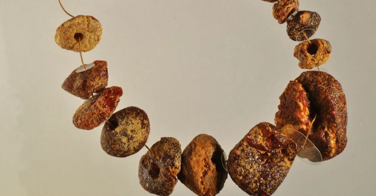 An amber necklace from Archaic Greece, 600-480 BCE. Potidaea, ancient Macedon. (British Museum, London)