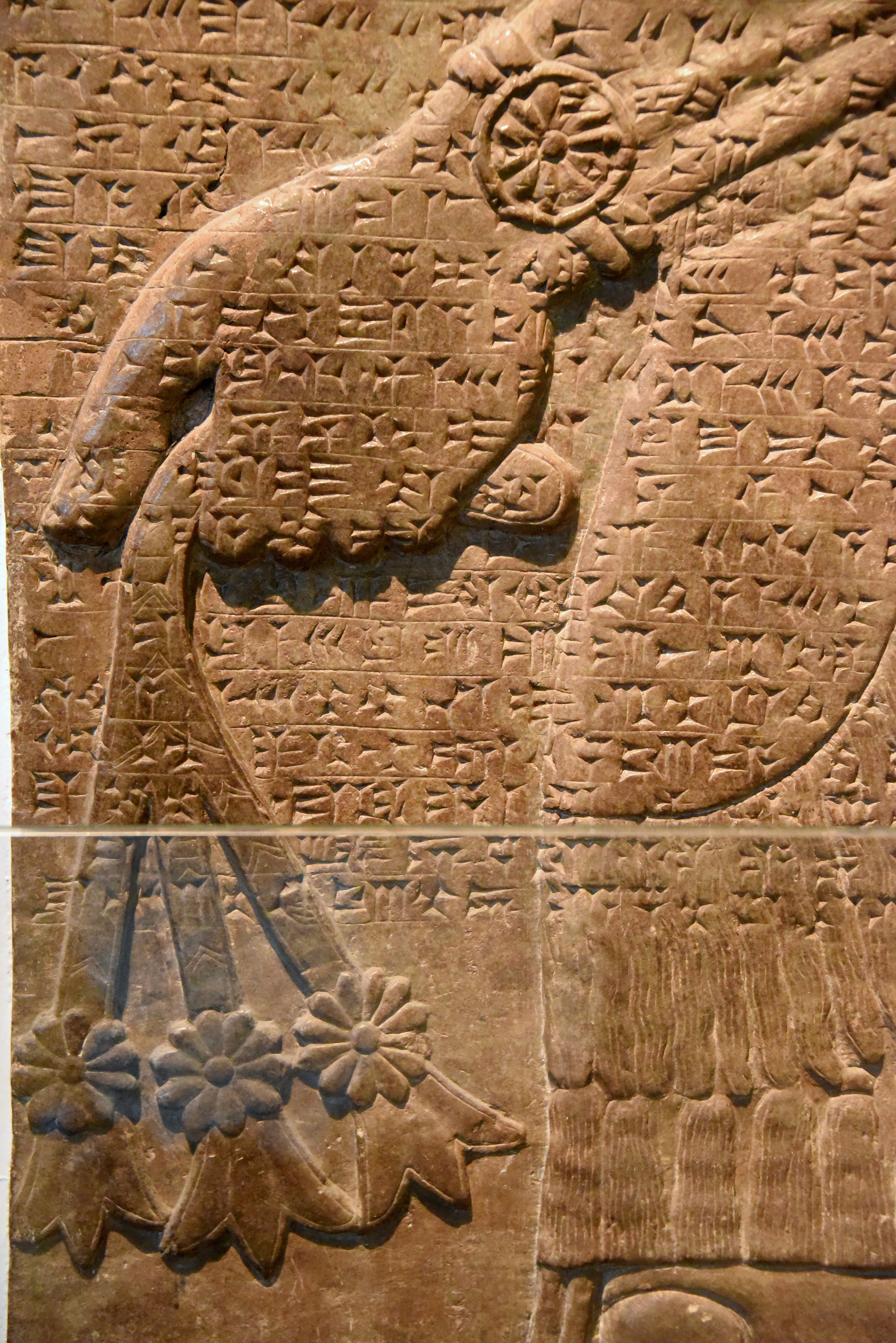 Alabaster bas-relief detail showing an Apkallu holding a flowering branch. Neo-Assyrian Period, 865-860 BCE. Detail of Panel 1, Door A, Room F, the North-West Palace at Nimrud, modern-day Iraq. (The British Museum, London)