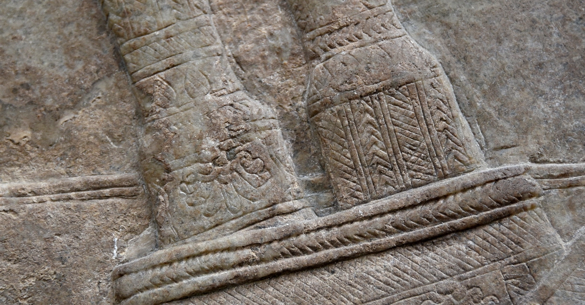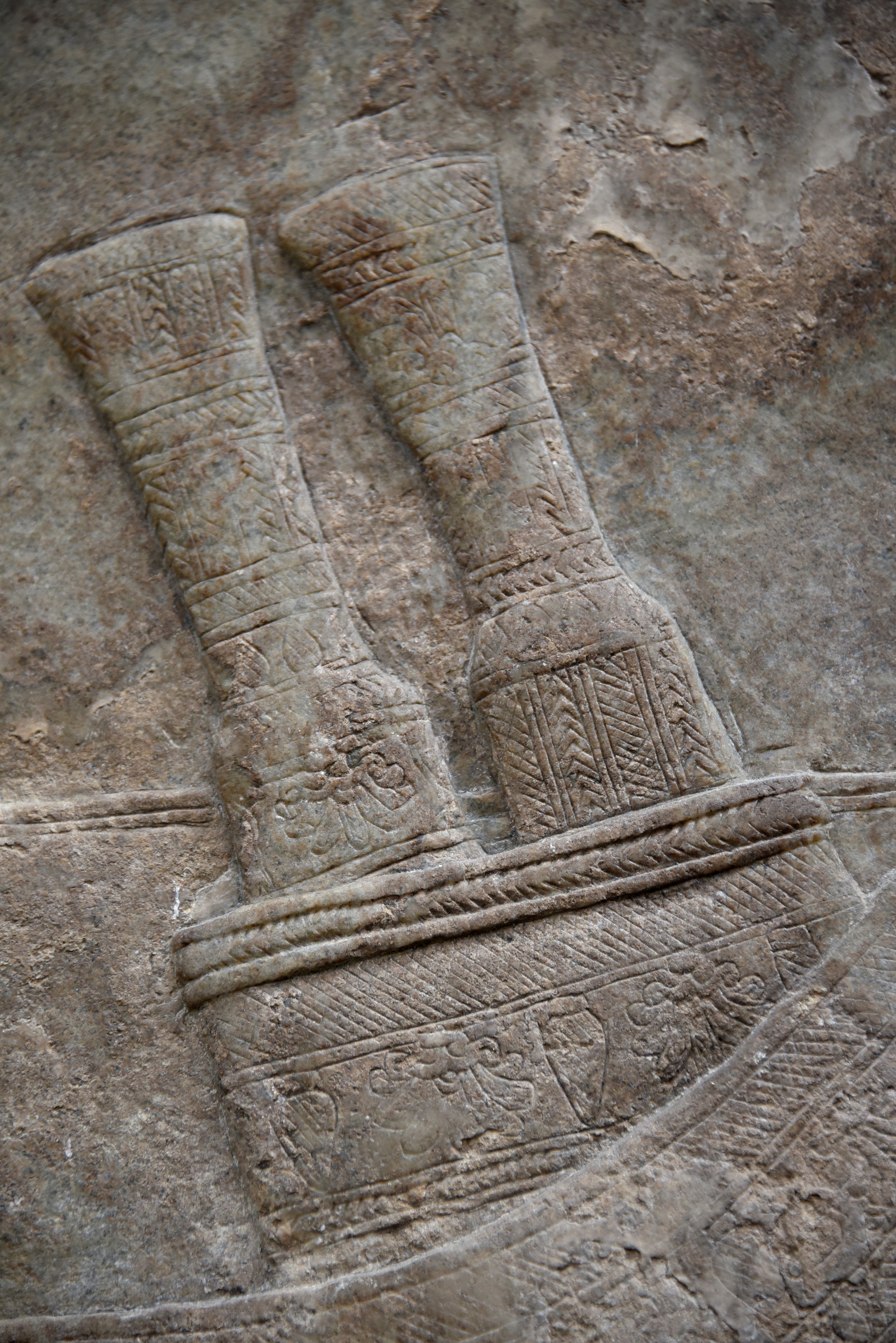 Alabaster bas-relief detail showing the daggers of an Apkallu. Neo-Assyrian Period, 865-860 BCE. Detail of Panel D1, Room G, the North-West Palace at Nimrud, modern-day Iraq. (The British Museum, London)
