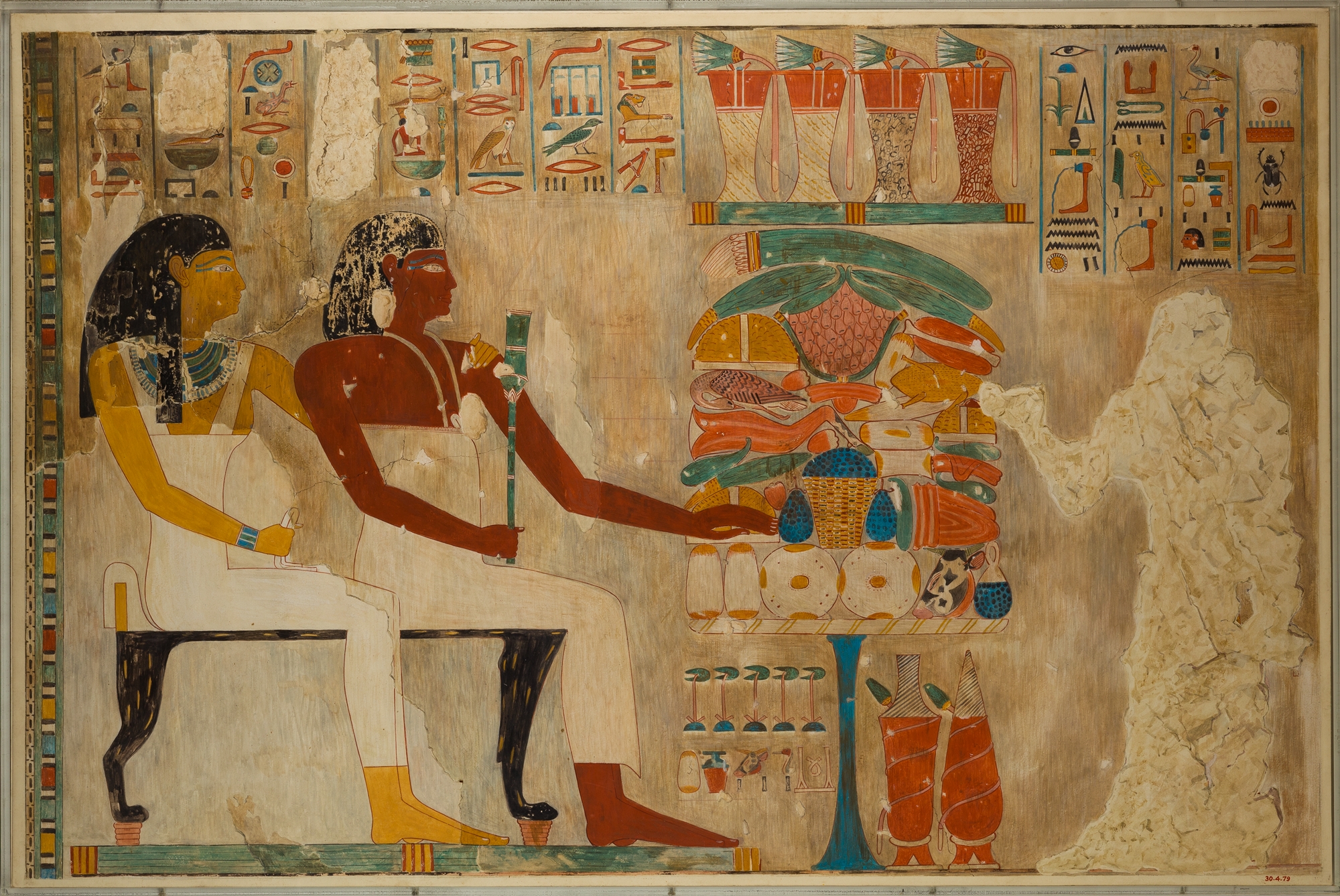 A depiction from the tomb of the vizier Rekhmire showing him and his mother receiving offerings. Rekhmire served under the pharaohs Thutmose III (1458-1425 BCE) and his son Amenhotep II (1425-1400 BCE). (Metropolitan Museum of Art, New York)