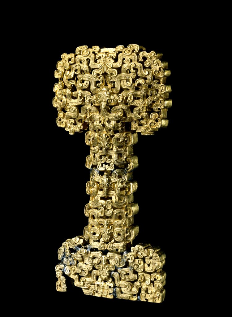 A gold sword hilt decorated with interlaced dragons. Eastern Zhou dynasty, 6th-5th century BCE. The British Museum, London.