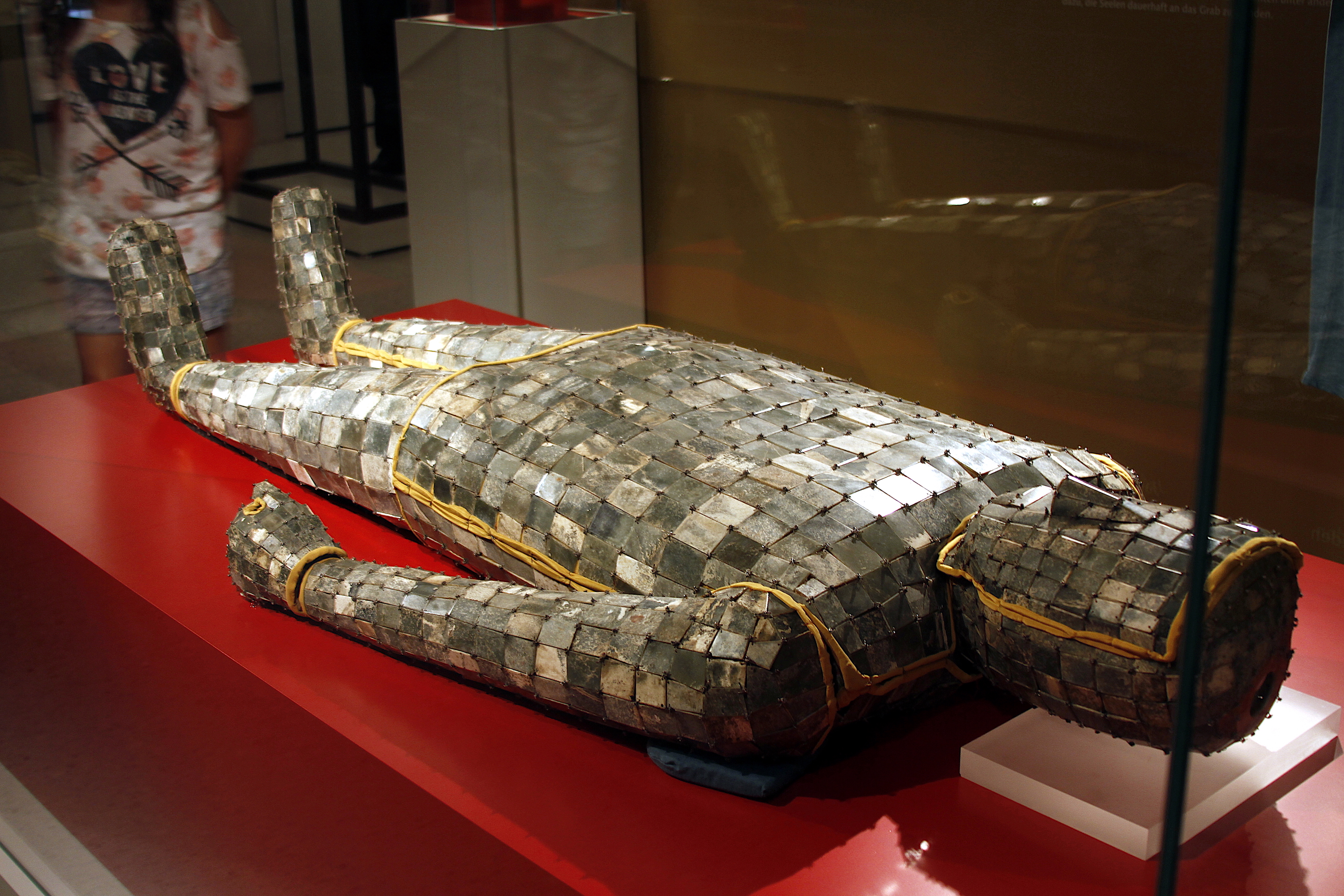 A funerary garment from the Han dynasty (2nd century BCE - 2 century CE). Made from hundreds of small rectangles of jade stitched together using gold and silver wire, they were used to completely encase the body of deceased royalty. (On exhibition at the Neues Museum, Berlin)