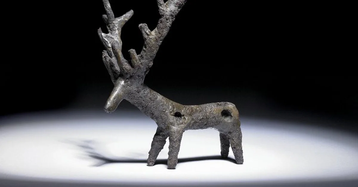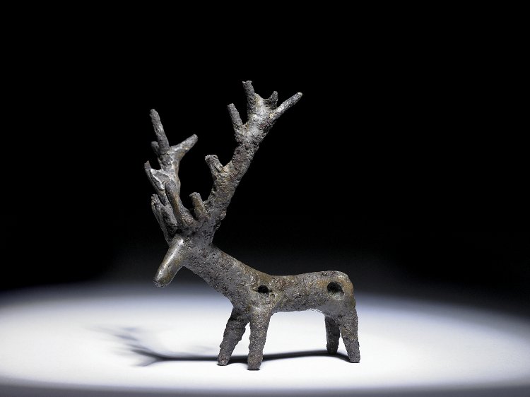 A stag pendant made from a copper alloy, Persia, 1500-500 BCE. Height: 3.19 cm. (British Museum, London)