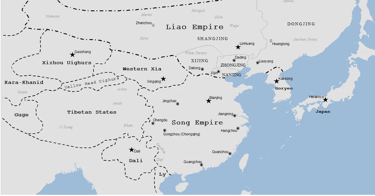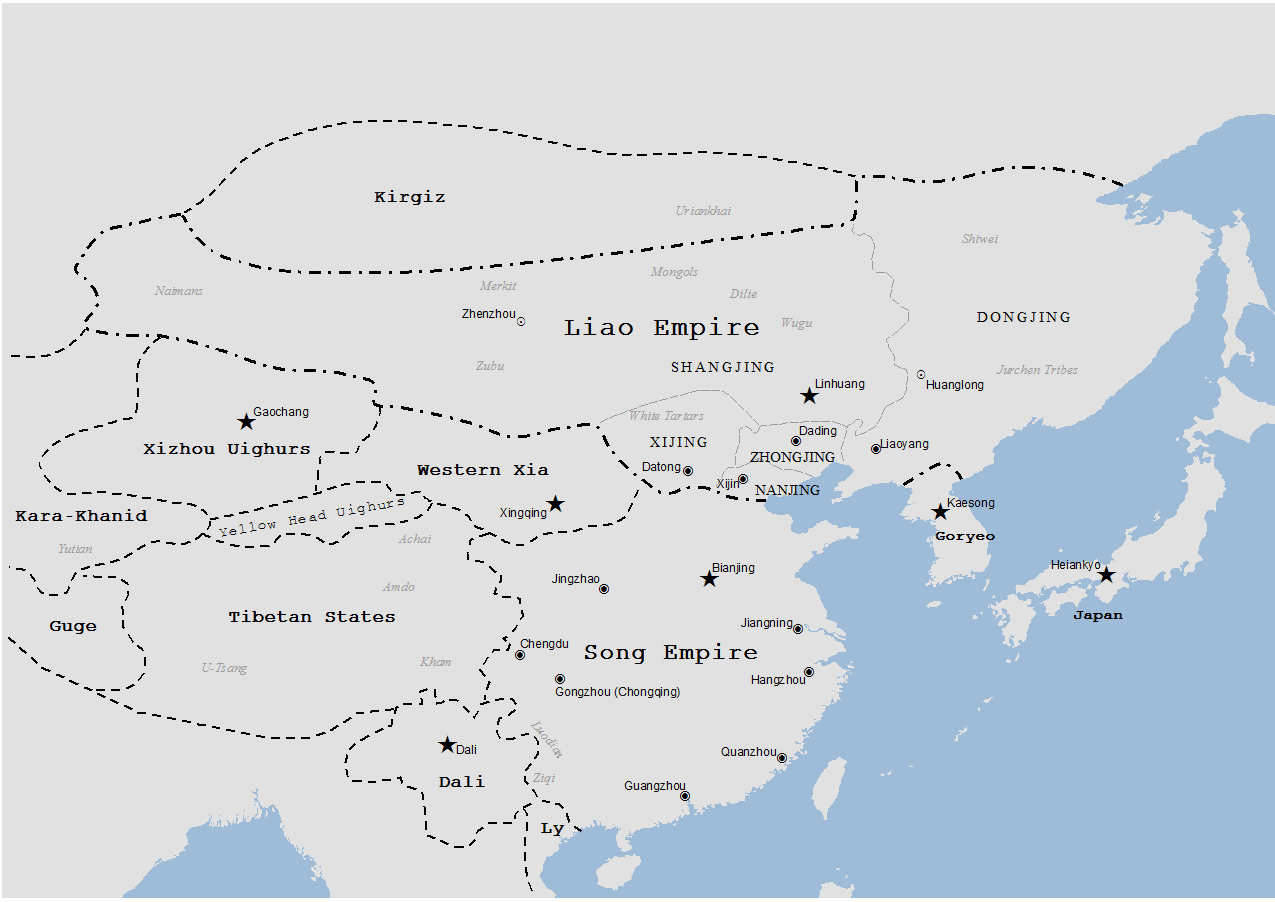 A map indicating the territory controlled by the Liao dynasty (Khitans), 907-1125 CE.