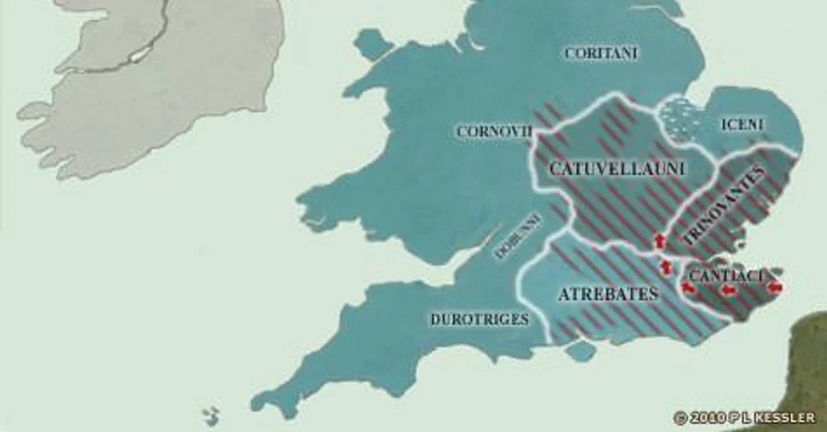 Kessler, P. L. (2012, July 06). Map of the British Isles in 54 BC. World History Encyclopedia. https://www.worldhistory.org/image/739/map-of-the-british-isles-in-54-bc/
