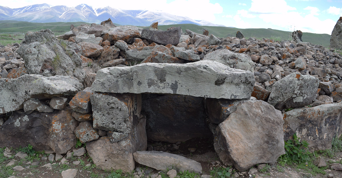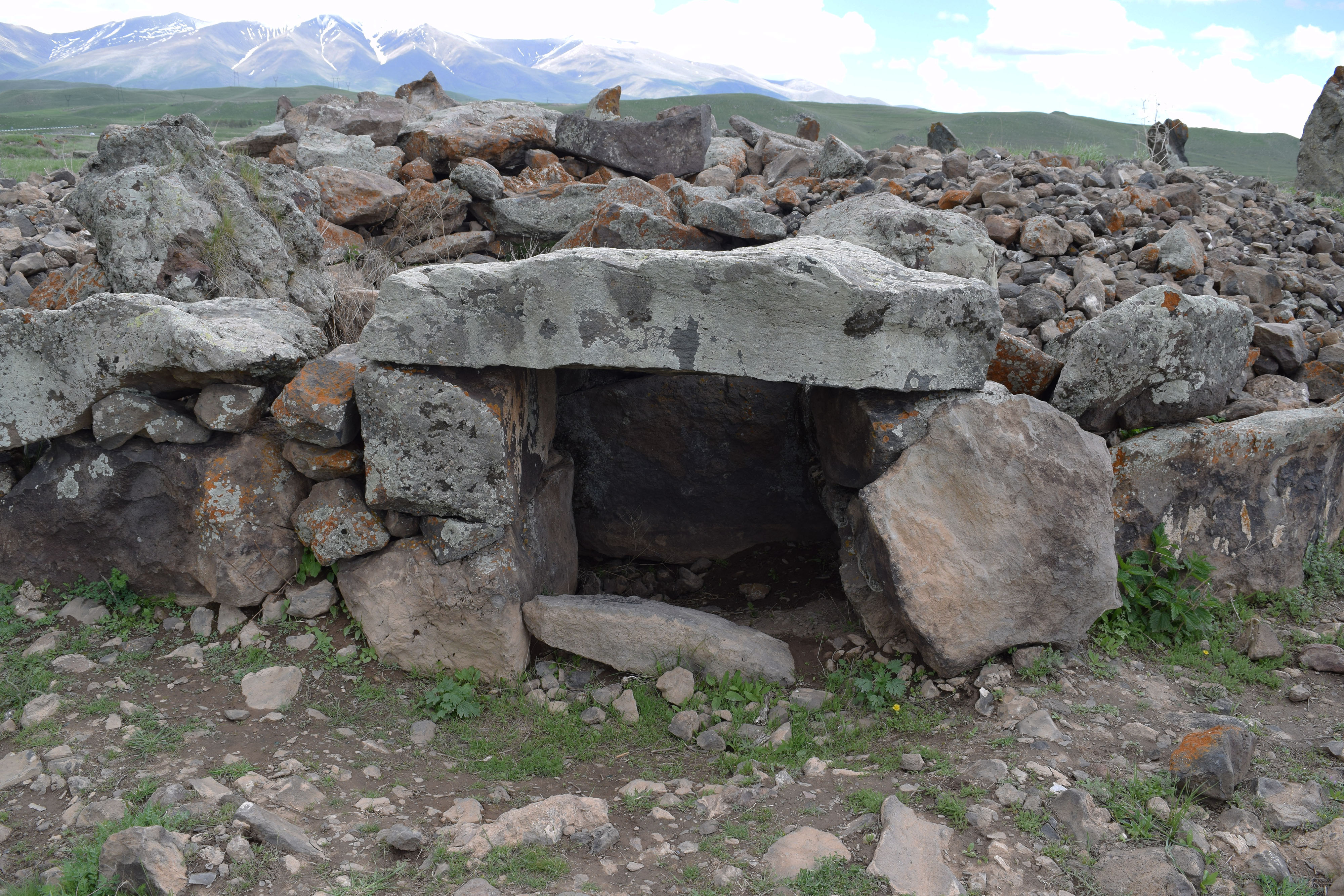 This is an ancient chamber, perhaps used for burials, at the prehistoric site of Zorats Karer in modern Armenia. Archaeologists are still trying to ascertain how it is.