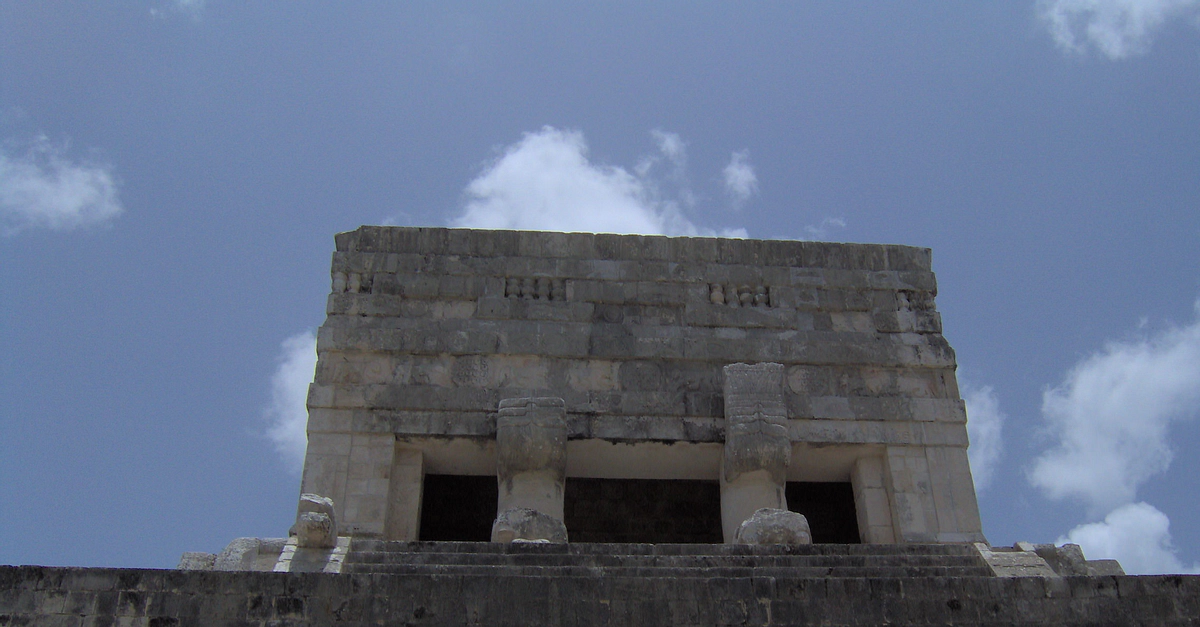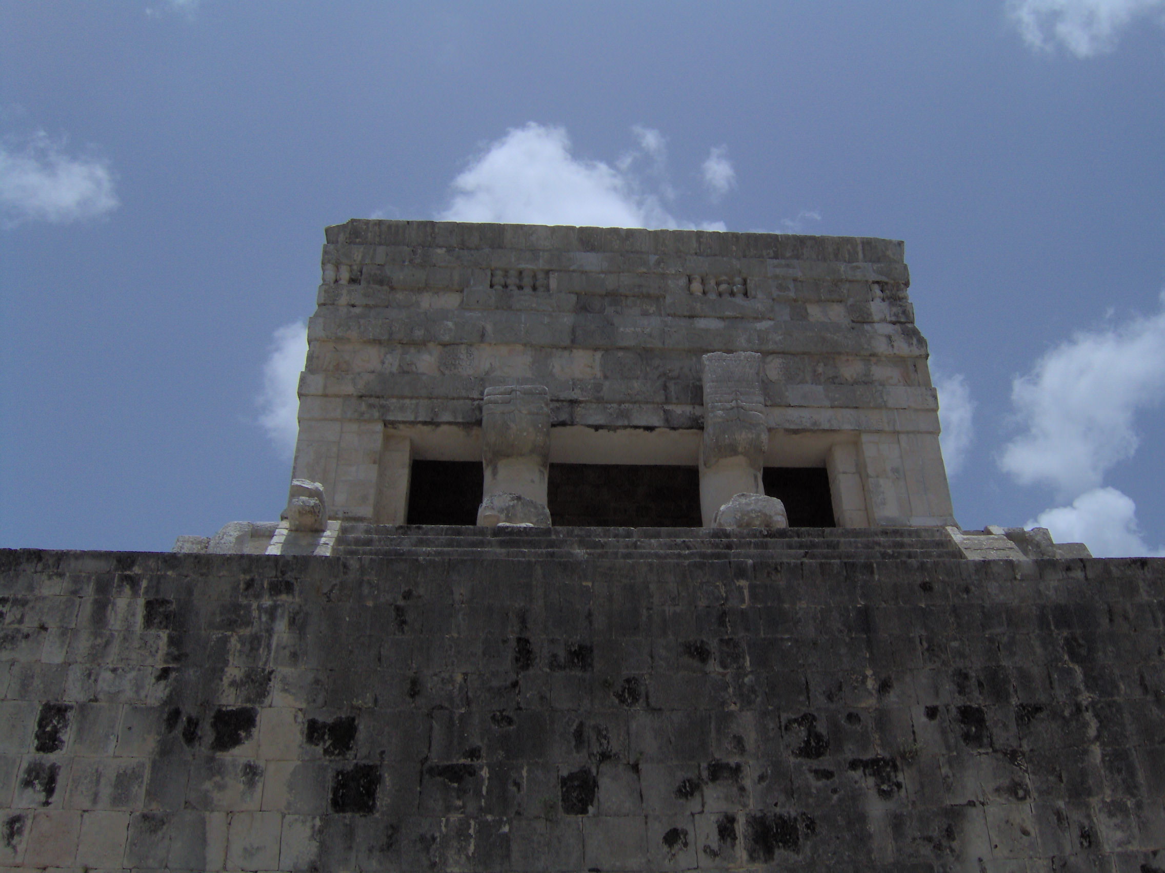 This small building sits high above the great Ball Court at Chichen Itza and has been identified as a temple from which the priests and royalty would watch the game of Pok-a-Tok played below them.