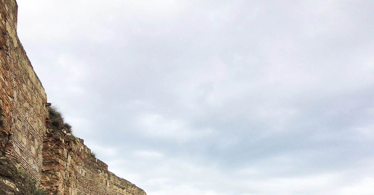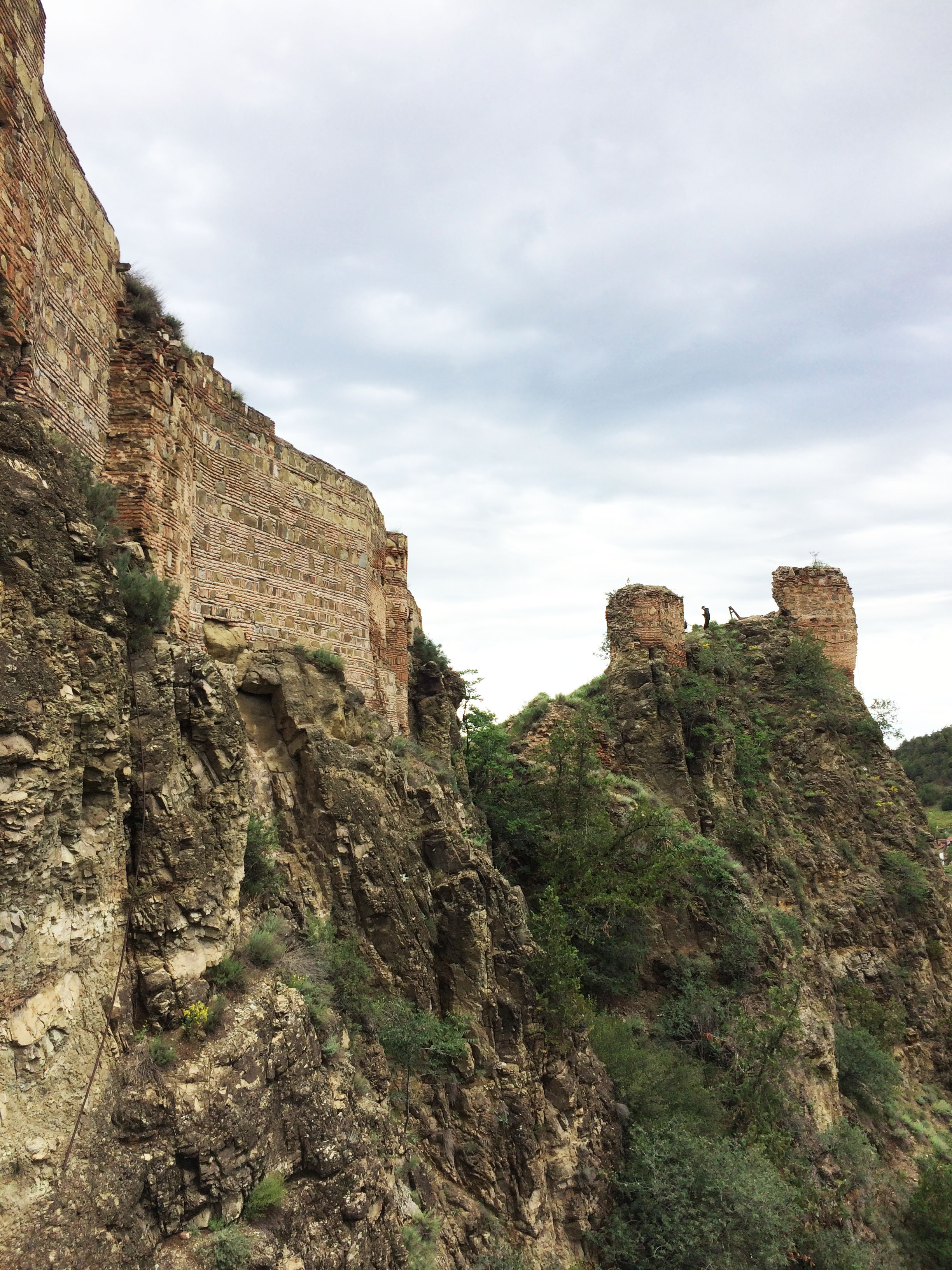 This photograph shows a portion of the Narikala Fortress, which runs parallel to the city of Tbilisi, Georgia and the Kura River. The fortress was first built in the 4th century CE and later expanded by the Umayyads during the 7th century CE. David IV of Georgia (r. 1089-1125 CE) also expanded the walls and the fortress during his reign.