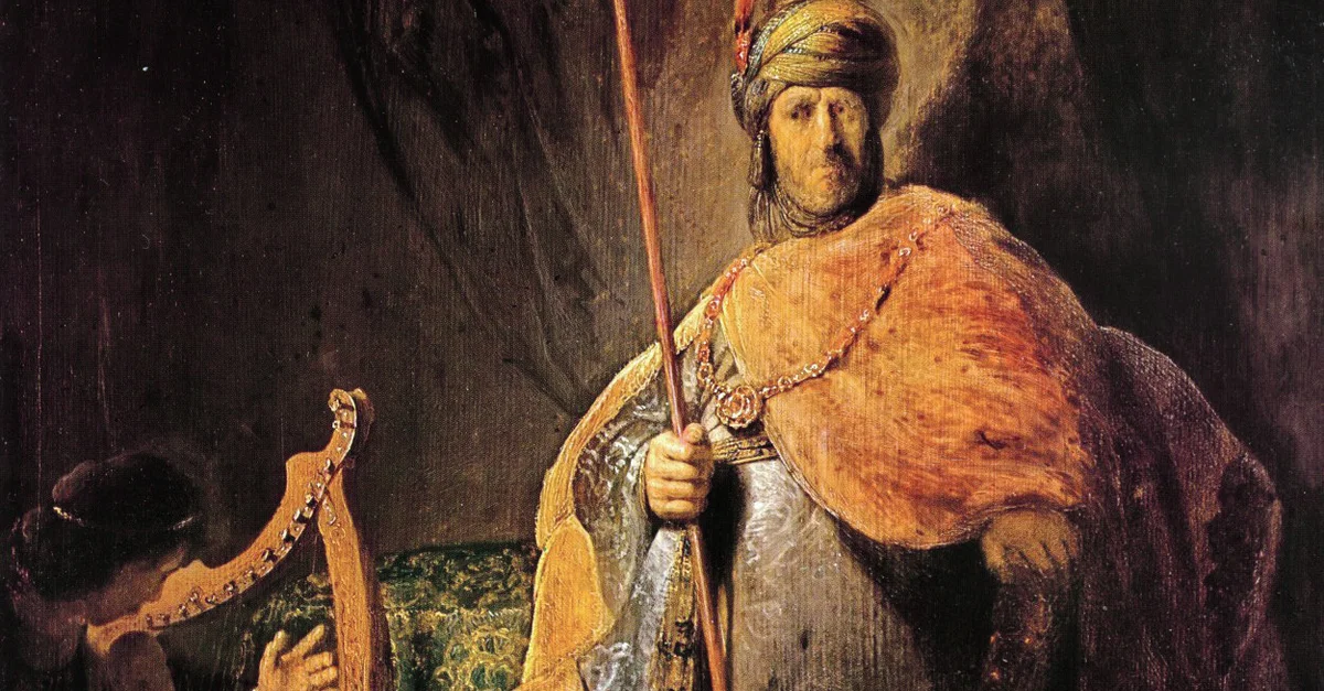 A 17th century CE painting by Rembrandt of the future King David of Israel playing the harp to soothe the tormented mind of Saul. (Stadel Museum, Frankfurt, Germany)