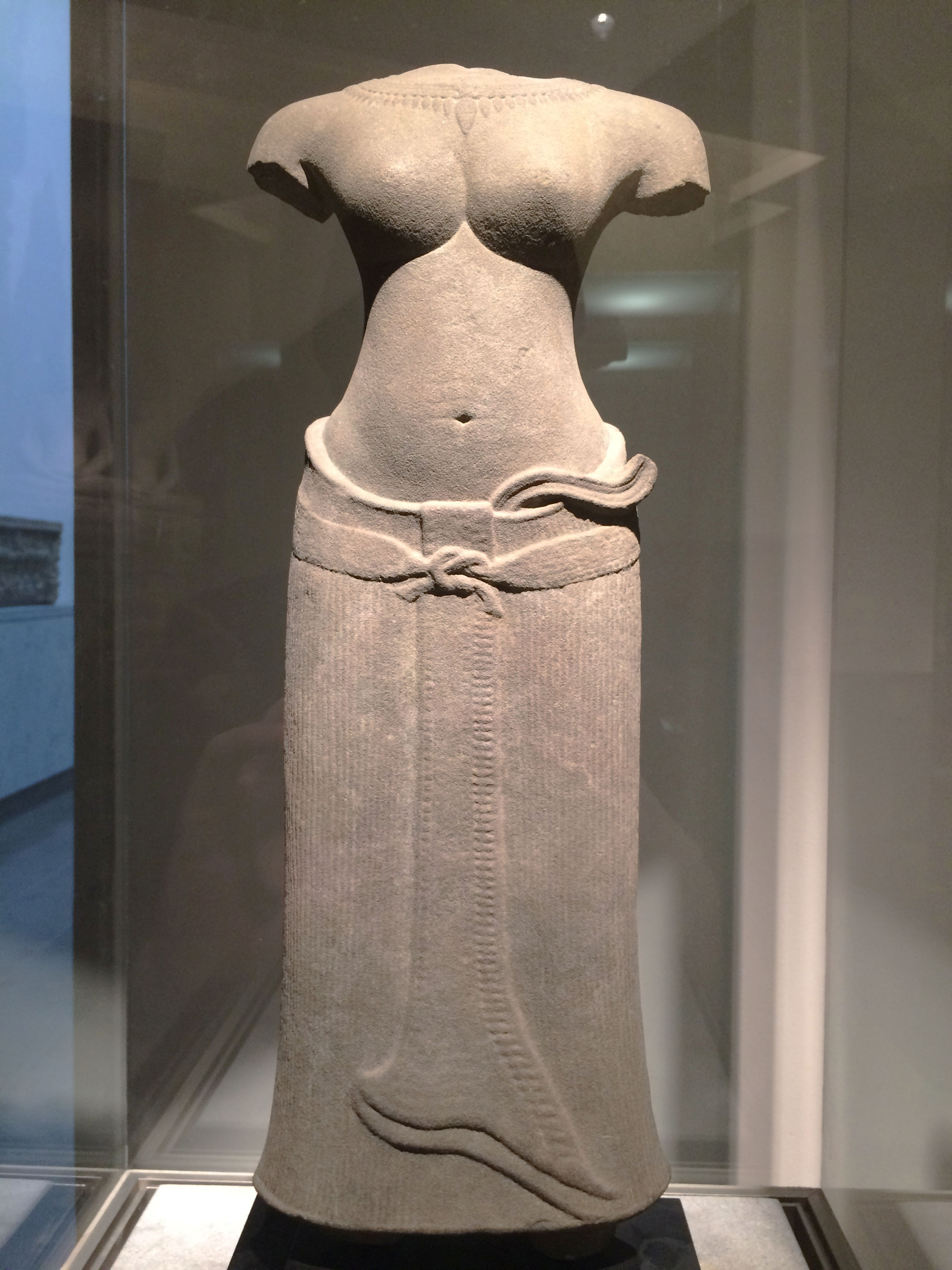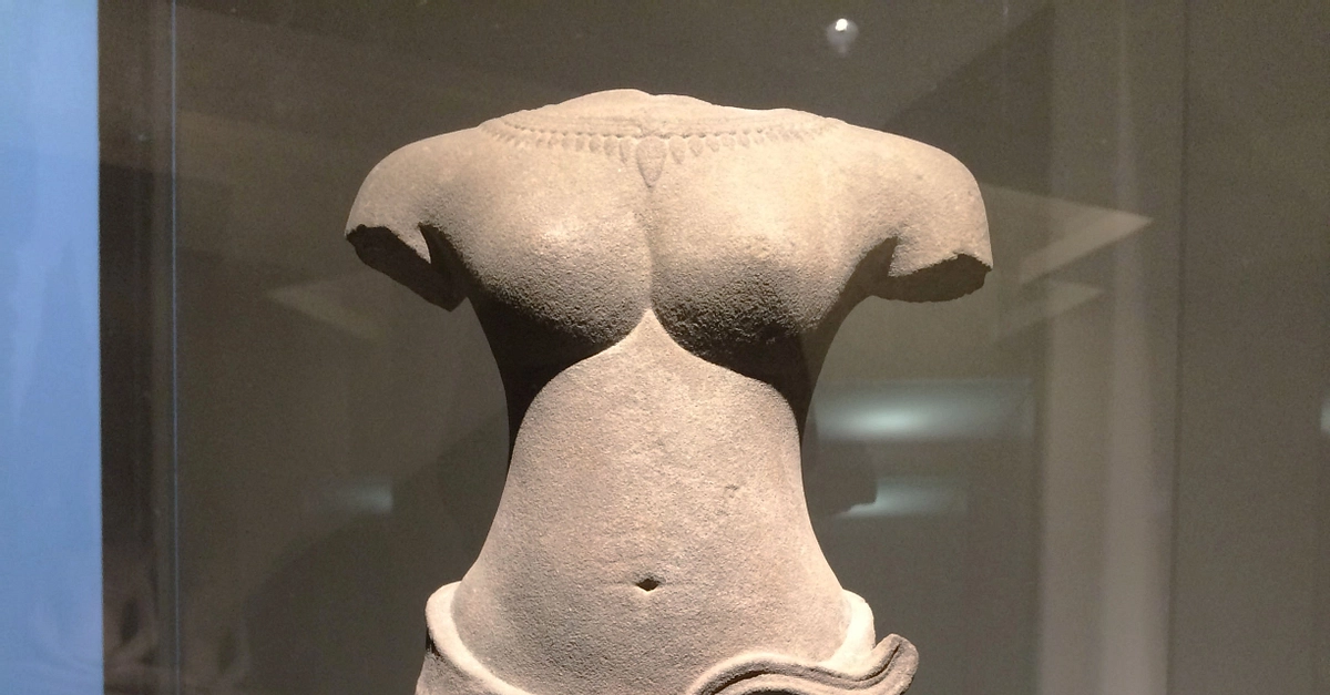 This Khmer sandstone sculpture represents a Hindu goddess in the Baphuon style. It comes from Preah Vihear, Preah Vihear in Cambodia and dates from the 11th century CE. (Musée Guimet, Paris)