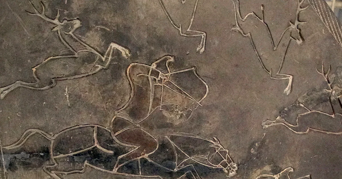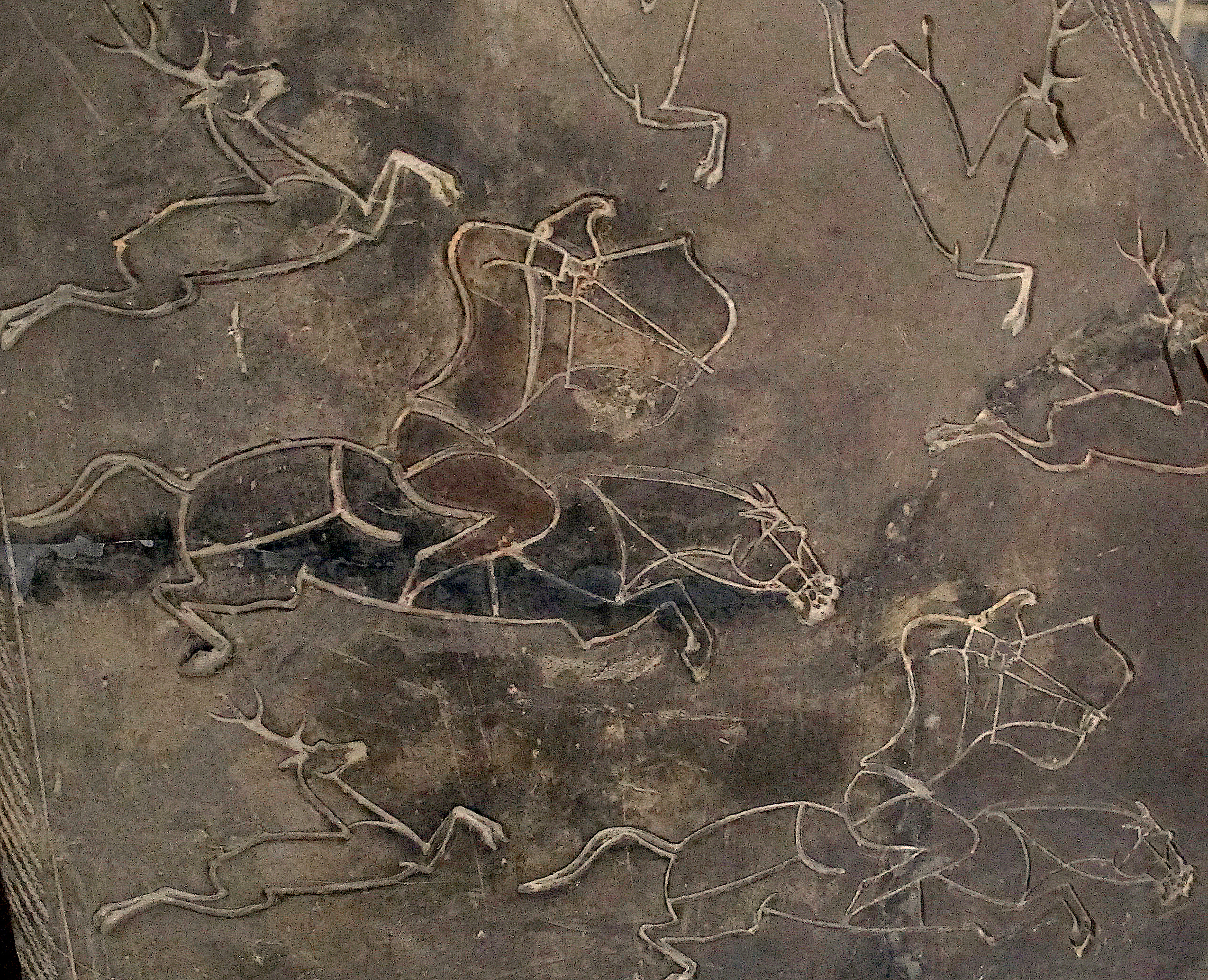 A mounted archer hunting, Han dynasty, 206 BCE - 220 CE. From a funeral slab.