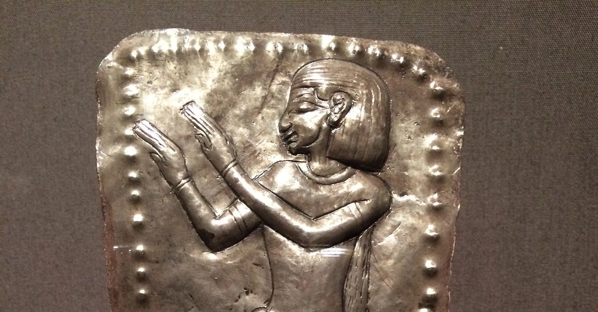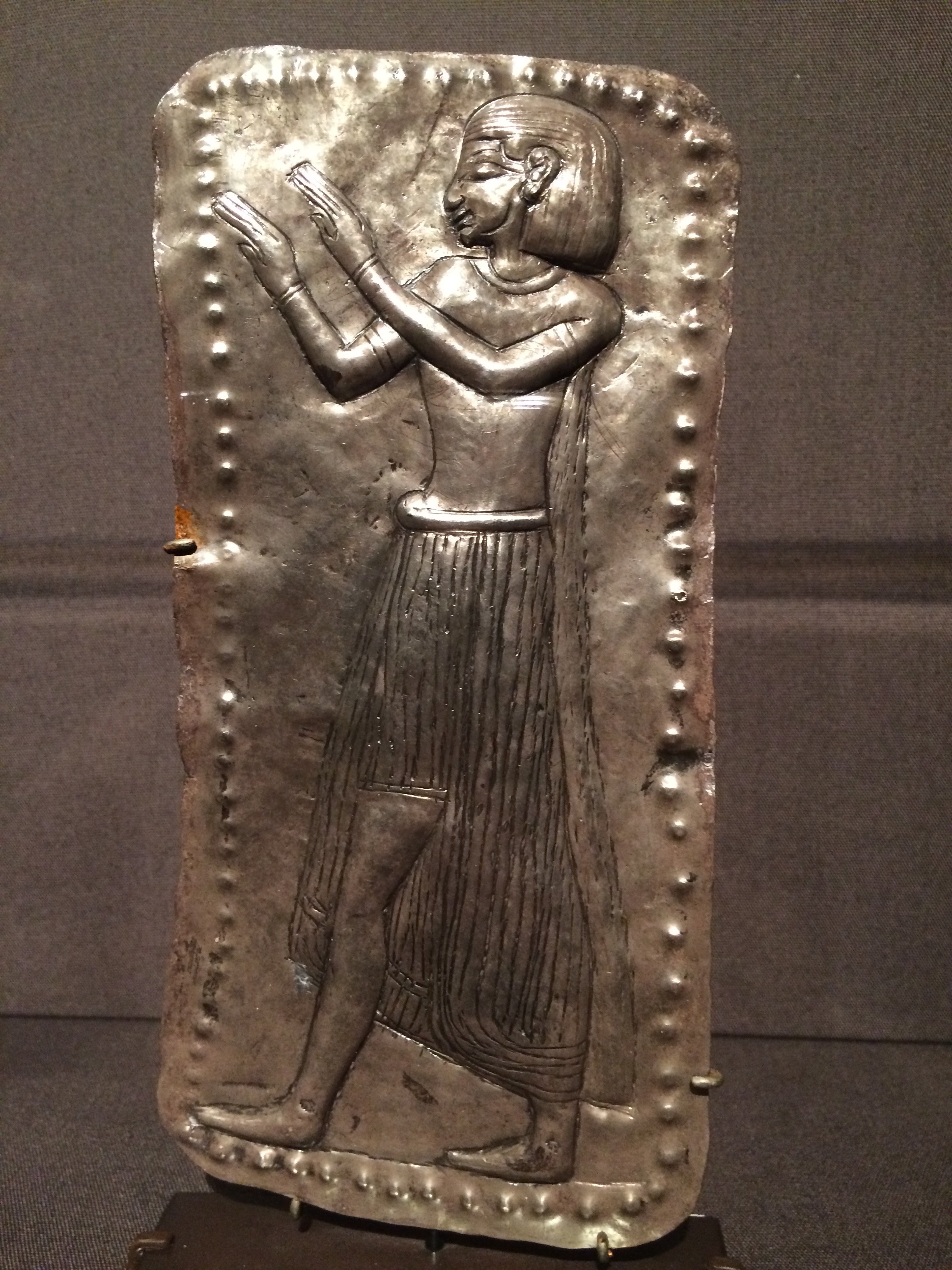 This ancient Egyptian plaque dates from the 13th-12th century BCE. It is made of silver and other metals. (Collection of Jude and Michael Steinhardt, New York)