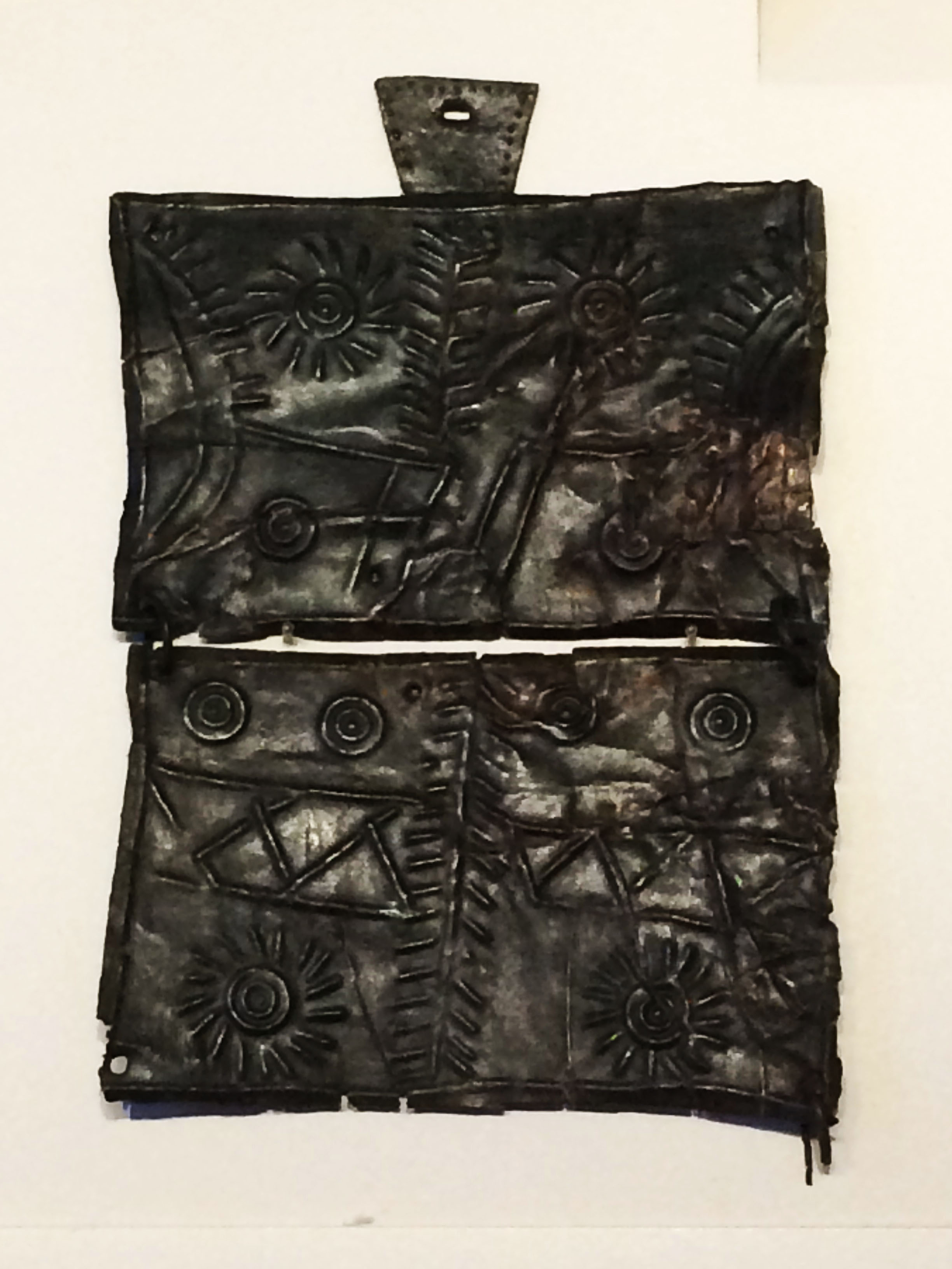 This Celtiberian pectoral ornament, which portrays a wild landscape replete with horses and stars, would have closed to form a carrying case. This specimen is made of bronze and dates to the 3rd-2nd century BCE. It was found in Arcobriga (Monreal de Ariza, Zaragoza), Spain. (Museo Arqueológico Nacional, Madrid)