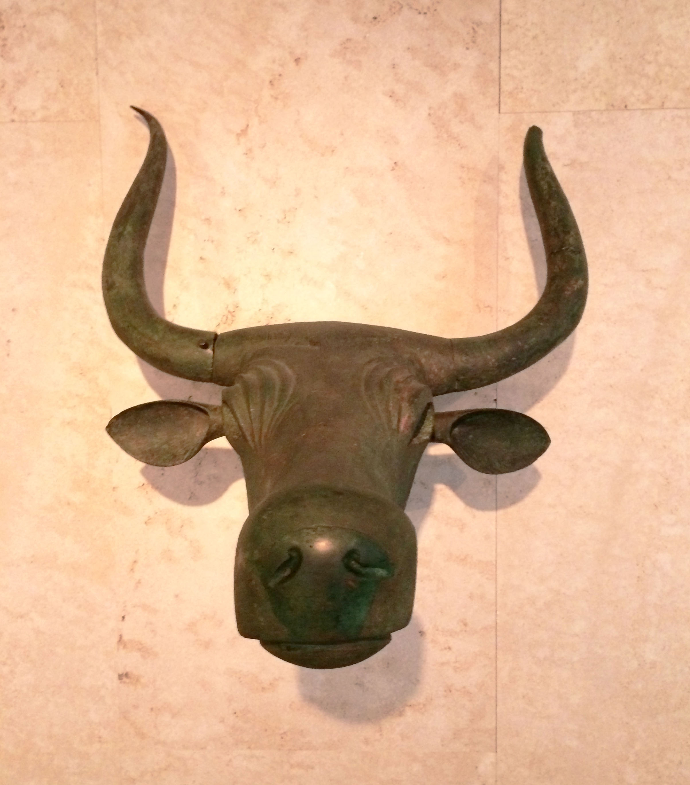This bronze bull was cast using the lost wax method. It is hollow inside with cold-etched details. The ears and horns were cast separately and riveted to the head. In some cases, the eyes were filled with vitreous paste. The bulls are interpreted here as images of a deity rather than as evidence of bull worship. This artifact was found at the Shrine of Predio de Son Corró (Costitx, Mallorca), Spain. It dates from the 5th-3rd century BCE and was made by members of the Post-Talayotic culture. (Museo Arqueológico Nacional, Madrid)