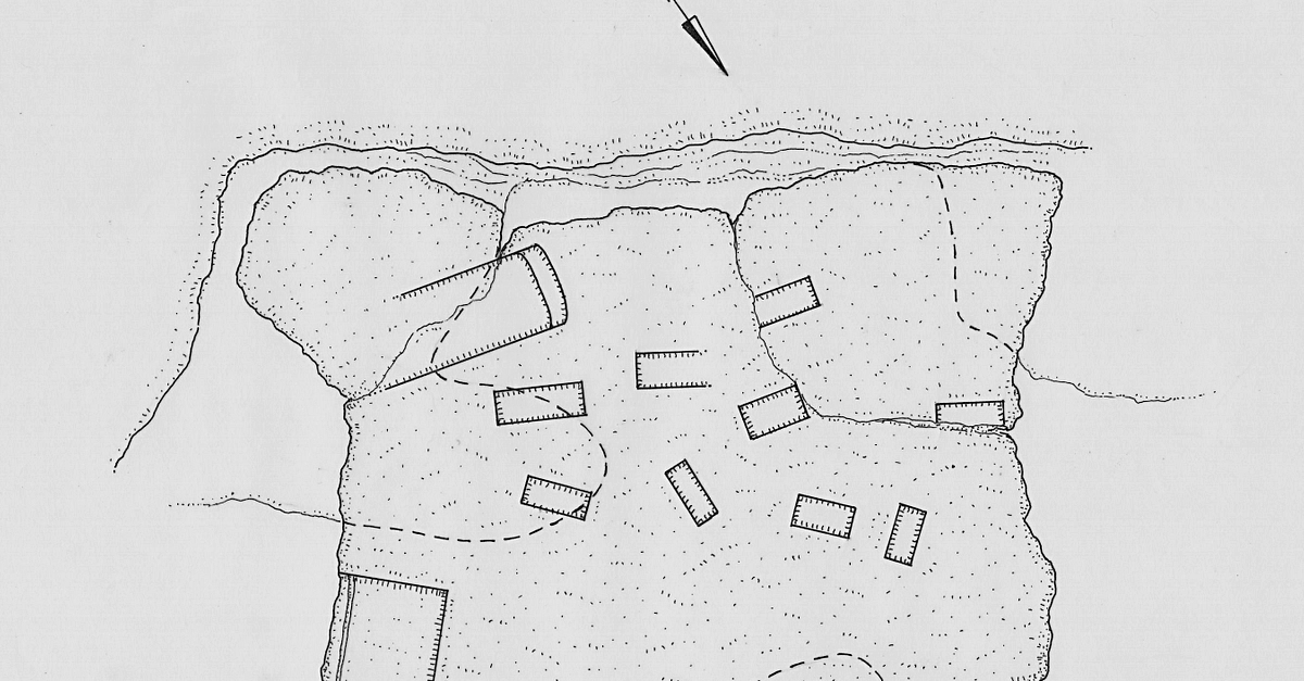 The plan of the pseudo dolmen of Avola, Sicily with ten small rectangular pits.