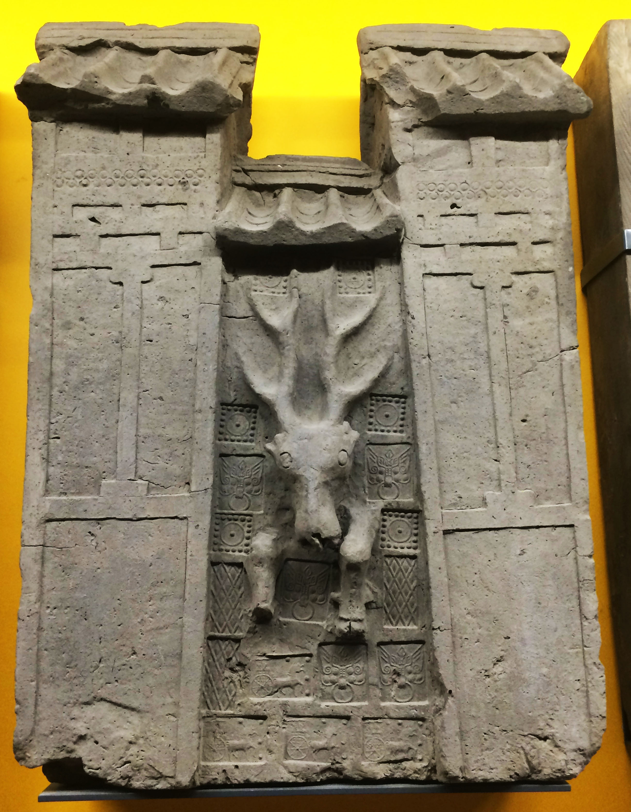 Until about the 2nd century BCE, Chinese tombs featured chambers made of heavy wooden logs. Thereafter, tombs were made of stone and brick. This stone-made example from the Han Dynasty (206 BCE-220 CE) makes clear that the tombs of the wealthy were also seen as subterranean residences. Adorned with beautifully decorated walls, they were furnished with everything that the occupant might need in the hereafter. Although criticized by social reformers, lavish burial customs persisted. Tombs in ancient China were meant to last and to be visited by relatives over time with offerings. Stone tablets bearing the occupant's name, dates, and a short biography were also deposited in the tomb. These would survive beyond the family lineage. (Royal Ontario Museum, Toronto)