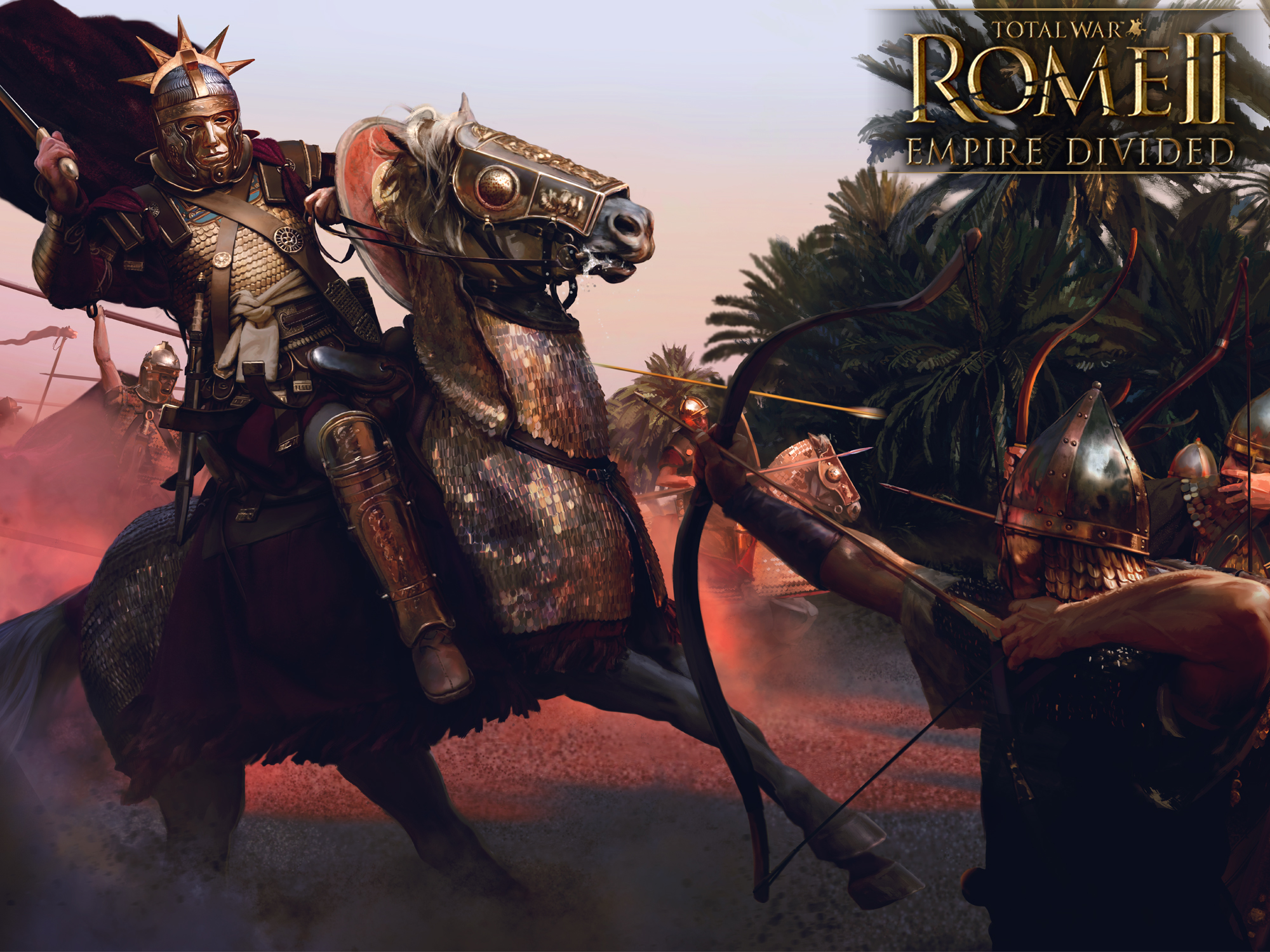 Artist's impression of Emperor Aurelian (r. 270-275 CE) in battle with Sasanid archers, as depicted in the PC game Rome II: Total War - Empire Divided.