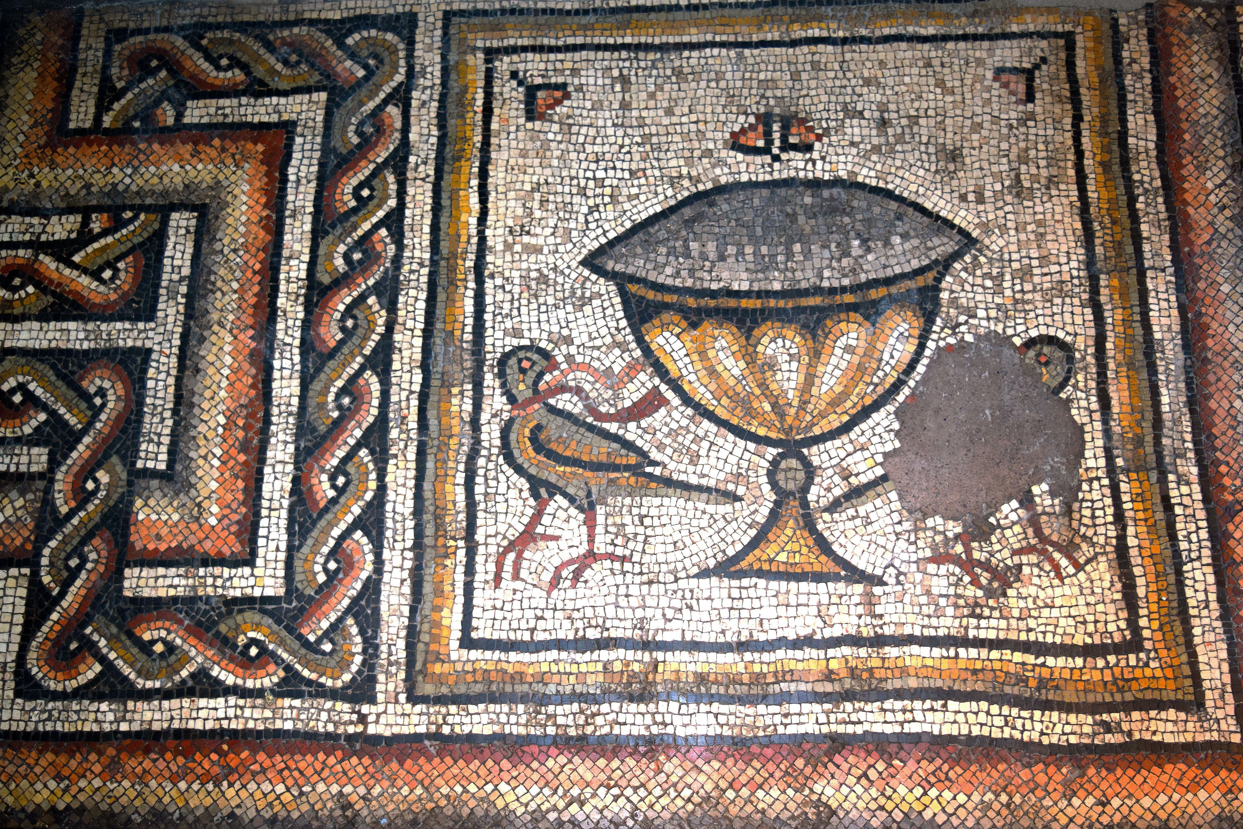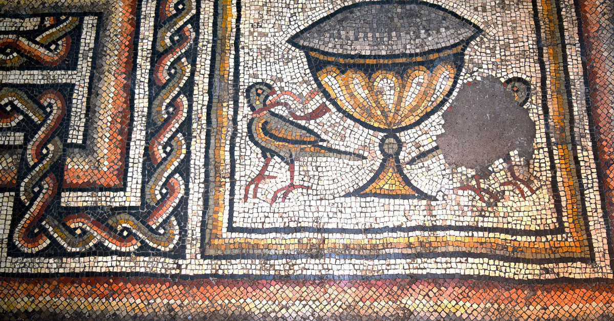 This fragment of a mosaic comes from an ancient cathedral that was once located in Apamea, Syria. Apamea, located on the right bank of the Orontes River, was an ancient Greek, Roman, and Byzantine city. This mosaic was made c. 533 CE and is made from tesserae. (Musée du Cinquantenaire, Brussels)