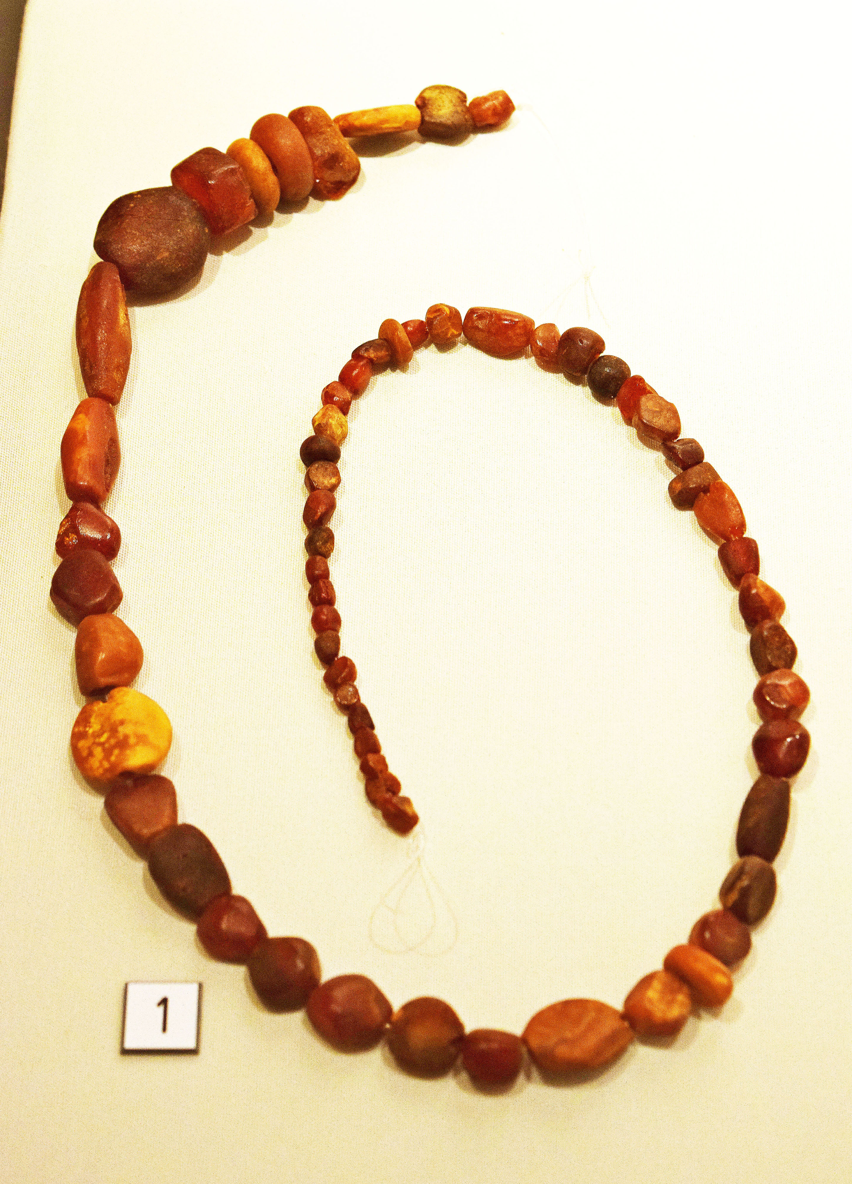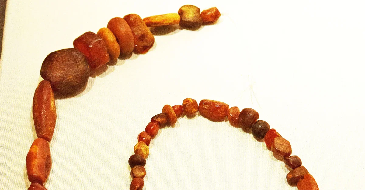 This necklace made from amber was found in a Merovingian tomb located in Sint-Gillis-bij-Dendermonde, Belgium. It dates from the second half of the 5th century to the early 6th century CE. (Musée du Cinquantenaire, Brussels)