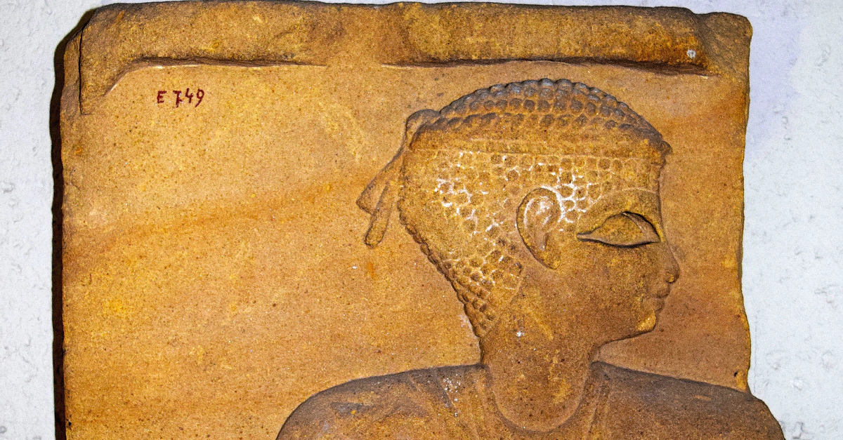 This stone fragment was made in ancient Egypt during the first few centuries it was under Roman occupation (30 BCE-641 CE). The fragment shows a dignitary or foreign emissary from Meroe, which flourished to Egypt's south from 800 BCE to 350 CE. (Musée du Cinquantenaire, Brussels)