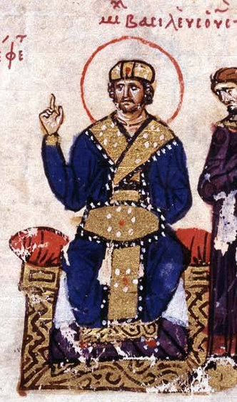 A detail of a 13th century CE illustration showing Byzantine emperor Michael III (Madrid Skylitzes, National Library, Madrid)