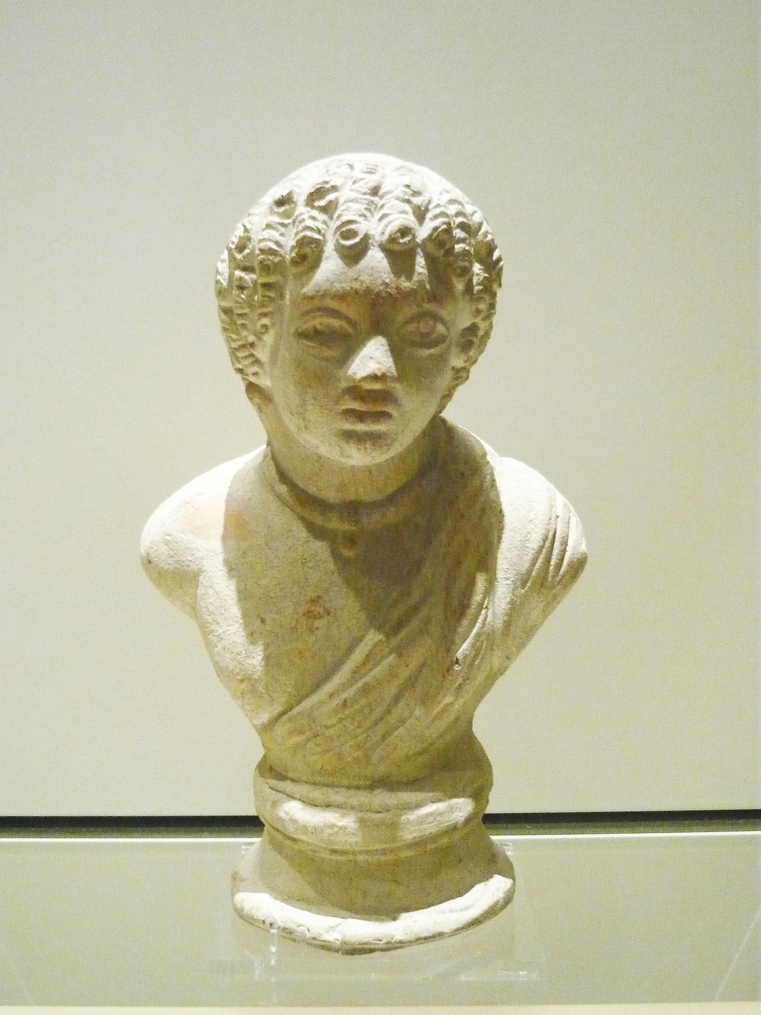 This type of bust was popular in the Near East during the Roman period. It is made of terracotta and is perhaps from what is prsent-day Jordan. It dates from c. 200-300 CE. (Royal Ontario Museum, Toronto)