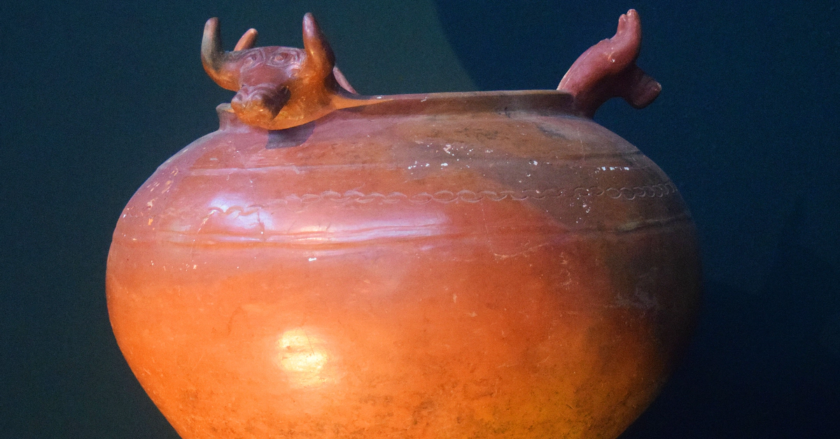 This Urartian ritual vessel made from baked clay is decorated with the heads of three bulls. It was found in the Biani tomb in what's present-day Yerevan, Armenia, and it dates from the 8th century BCE. (Erebuni Historical and Archaeological Preserve, Yerevan, Armenia.)