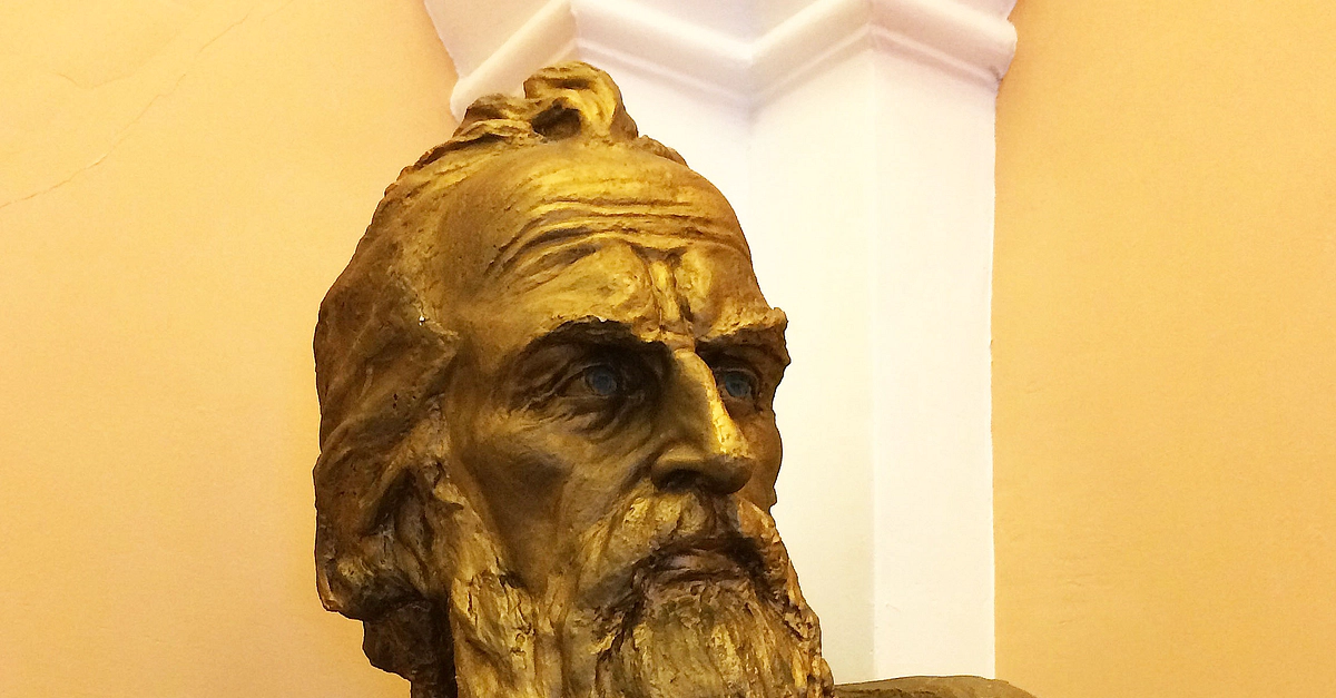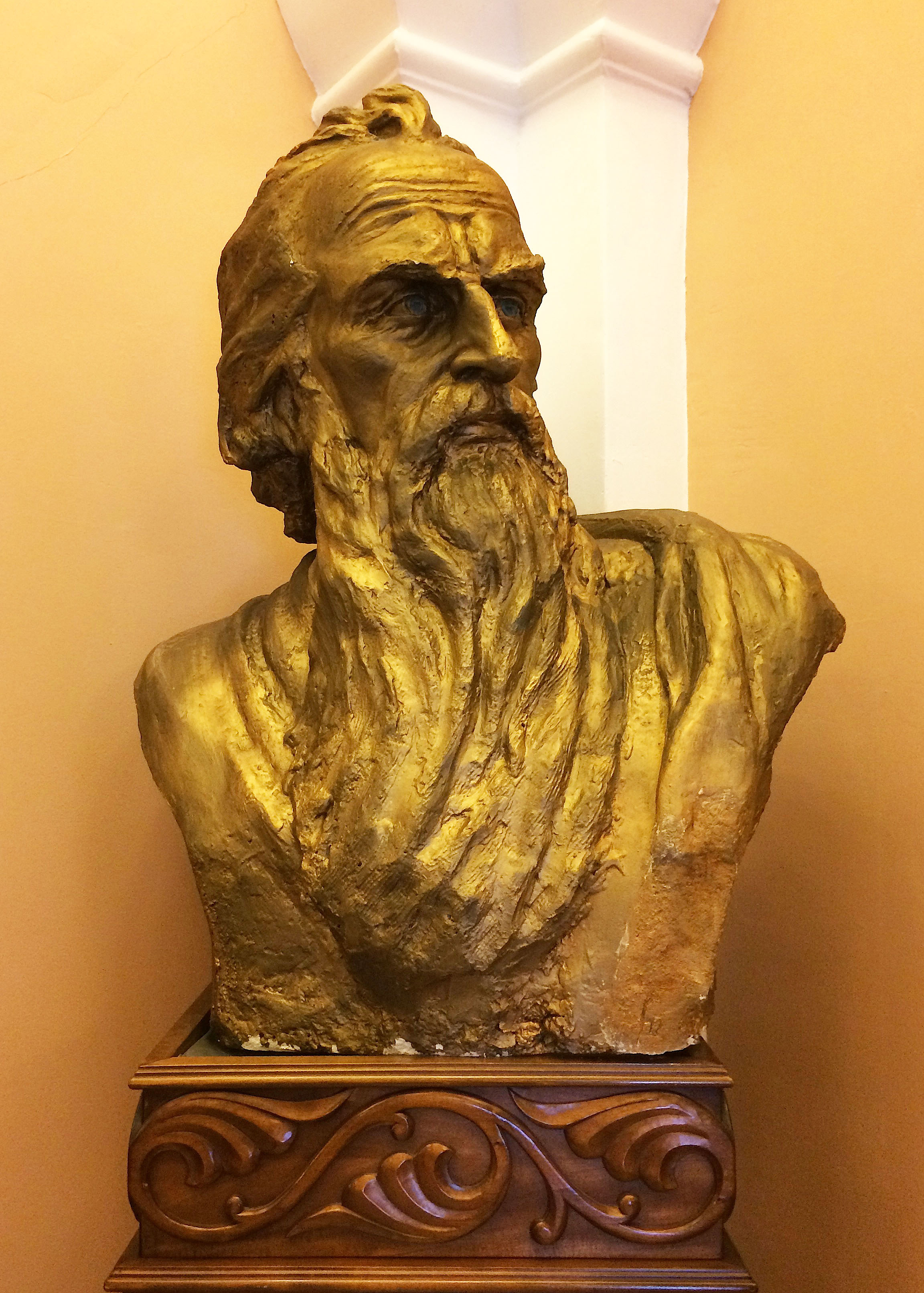 This modern sculpture of Movses Khorenatsi (c. 401-490s CE) by A. Urartu depicts the famous Armenian historian in old age. Khorenatsi was the author of the influential historiography "The History of Armenia," and he is frequently referred to as the "Father of Armenian History." (Mesrop Mashtots Institute of Ancient Manuscripts, Yerevan, Armenia)
