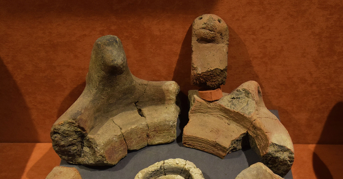 These are fragments that were originally part of an ancient Armenian hearth. (Metsamor Historical-Archaeological Museum-Reserve, Taronik, Armenia)
