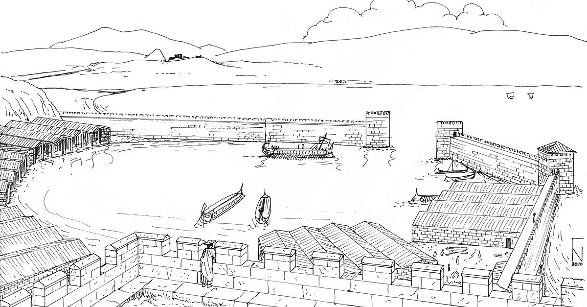 Artist's impression of Mounichia naval harbour near Athens. Republished with Permission from Zea Harbour Project