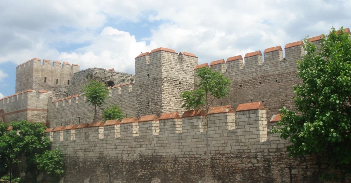 A restored section of the Theodosian Walls of Constantinople, completed c. 413 CE.