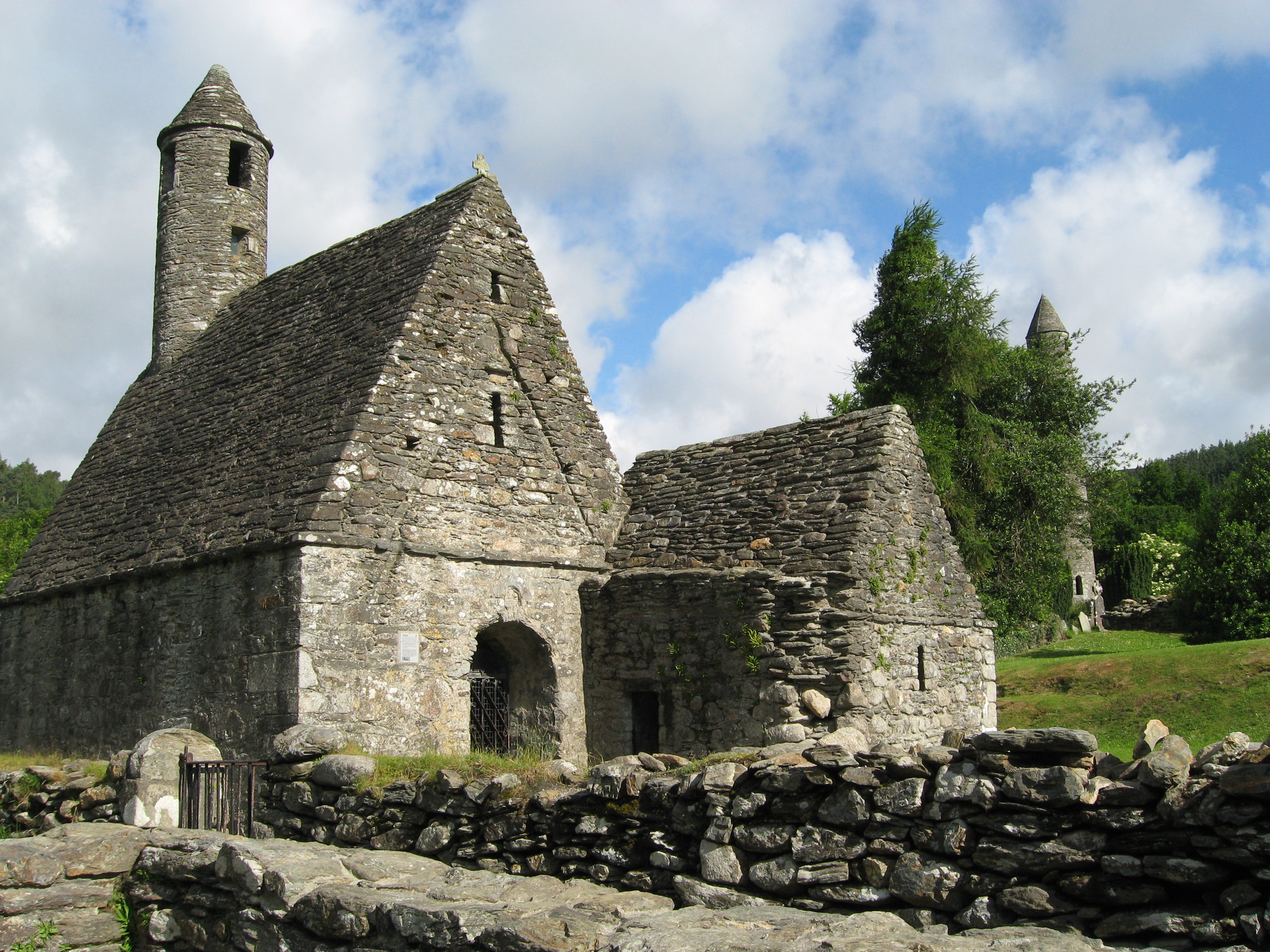 St. Kevin's Church found at the monastic site of Glendalough, Ireland. It dates from the 12th century CE, although the site itself is older and was founded in the 6th century CE. During the Irish Viking Age this site was frequently raided by the Vikings.
