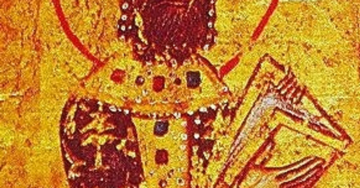 A manuscript illustration depicting Byzantine emperor Alexios I Komnenos (r. 1081 - 1118 CE).