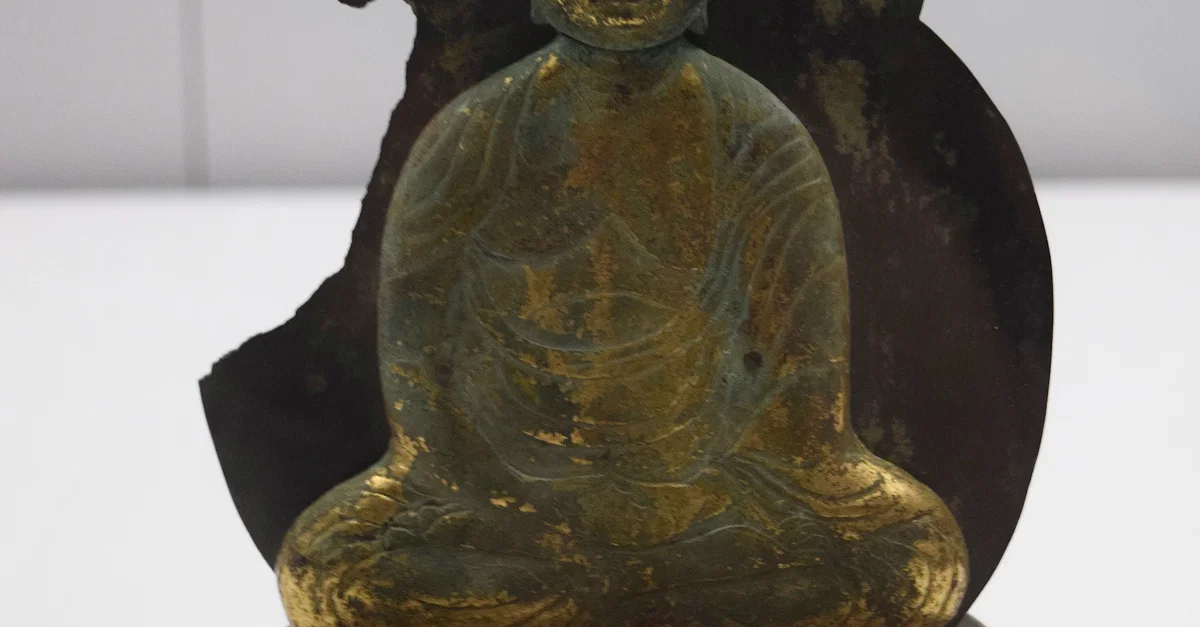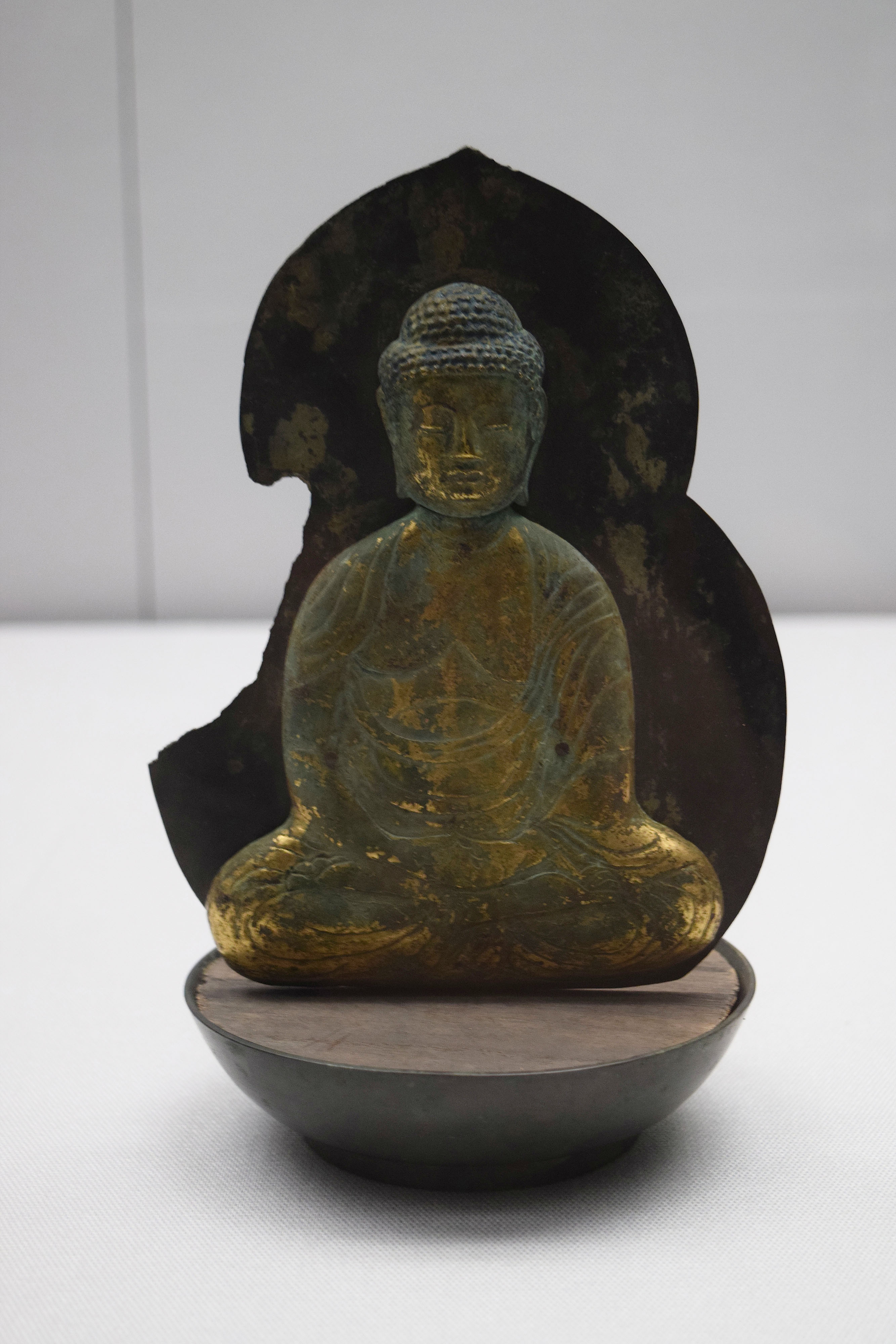 This object was excavated at Mt. Nachi in Wakayama, Japan. It dates from the 12th century CE and is made of gilt bronze. (Tokyo National Museum)