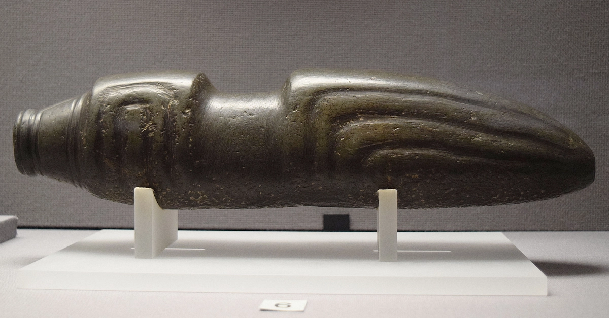 This stone ritual object comes from Japan and dates to the Jomon period, between 3000-400 BCE. (Tokyo National Museum)