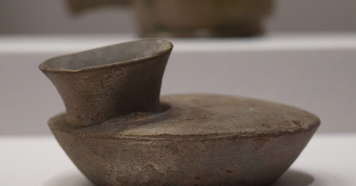 This inkstone was excavated at Miyahara No. 1 Tumulus in Miyahara, Shizuoka prefecture, Japan. It dates from the 7th century CE, during the Kofun period. (Tokyo National Museum)
