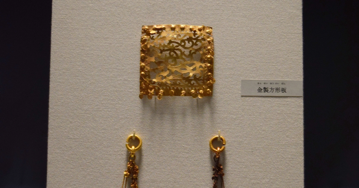 These golden jewels come from the Niizama Senzuka No. 126 Tumulus, which is located in Kawanishicho, Nara prefecture, Japan. They date the 5th century CE, during the Kofun period. (Tokyo National Museum)