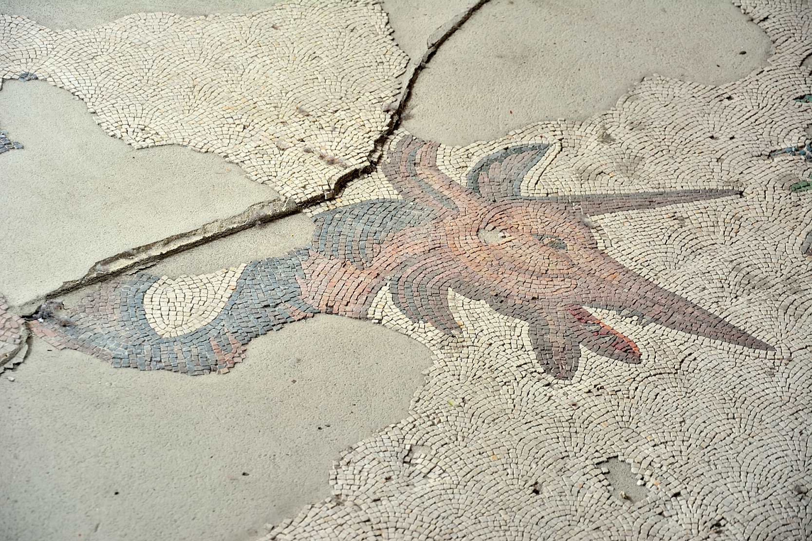 The okapi-headed leopard-griffin, Byzantine Mosaic, Period: Early Byzantine, circa 6th. century CE. Place: Constantinople, (Modern Istanbul, Turkey). Great Palace Mosaic Museum, Istanbul, Turkey. The Great Palace Mosaic Museum was inaugurated in 1987 CE. The mosaics in the museum mostly depict animals and humans in nature, mythological, pastoral motifs and hunting scenes. Once located in today’s Sultan Ahmet District, the Great Palace of Constantinople was built by Constantine the Great. The Palace area extended from the Hippodrome to the coastline. Destroyed in the Nika Riot in the 6th century CE, the Great Palace was rebuilt by Justinian I. The mosaics, decorating the floors of the museum today date back to that restoration time. The mosaics are just one-seventh of the original work.