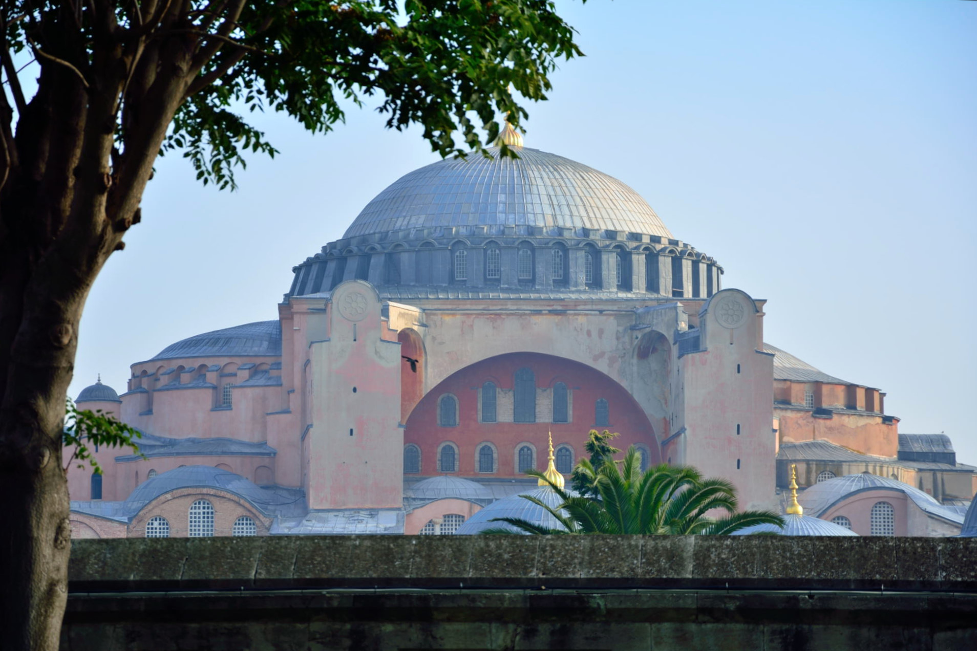 Hagia Sophia from the Blue Mosque, Istanbul, Turkey. First constructed 532-537 CE.
