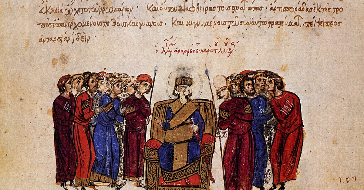 An illustration from a 12th century CE manuscript depicting the proclamation of Leo V the Armenian, emperor of the Byzantine Empire from 813 to 820 CE. (Madrid Skylitzes, National Library, Madrid)