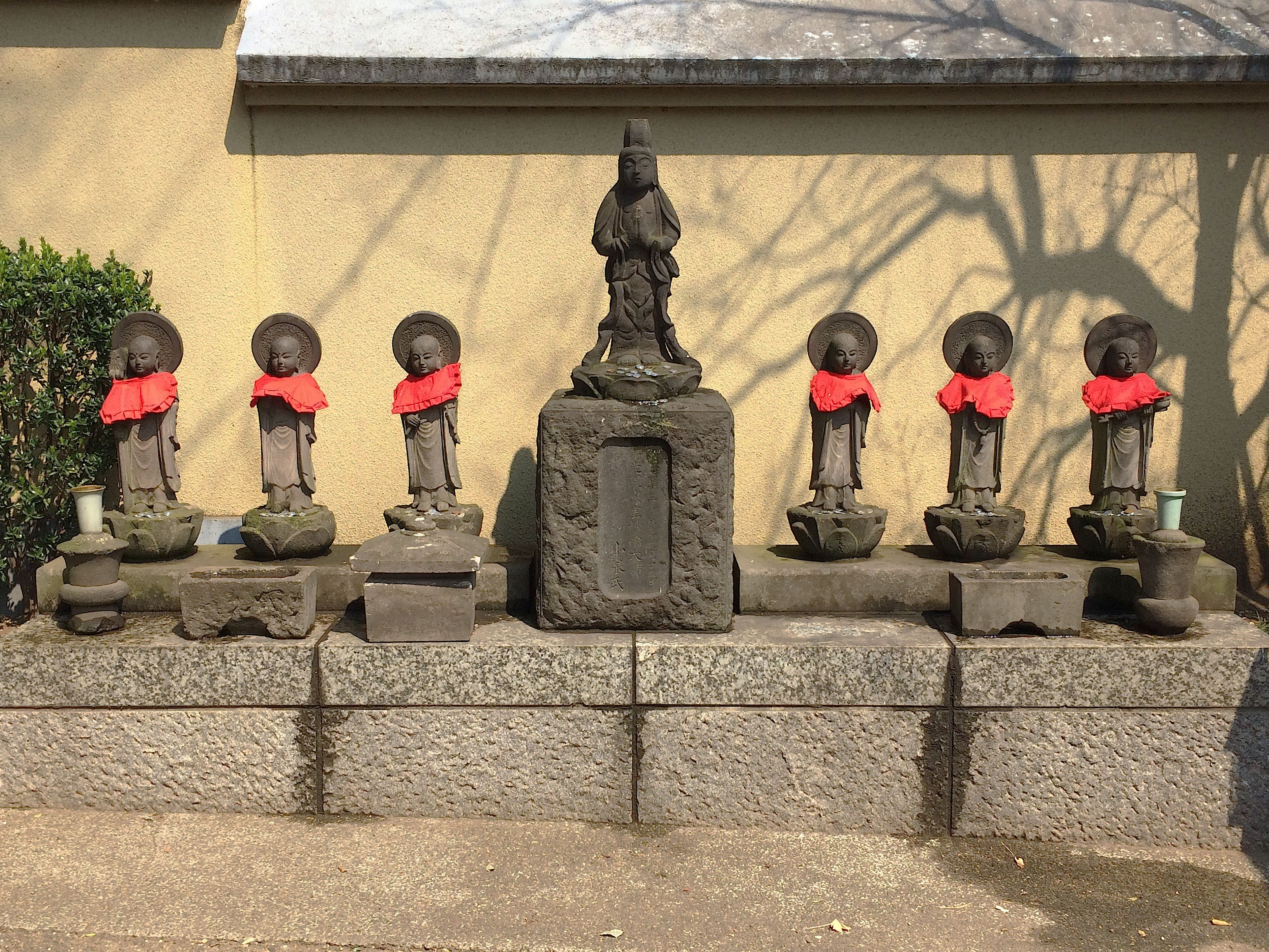 These jizo statues are located at the Chosenji Temple in Tokyo's Shibuya ward. The jizo are Bodhisattvas and thus the protectors of the weak, injured, travelers, women, and unborn children. A large number of jizo statues commemorate children who passed away or died at birth. They are commonly found throughout Japan, especially around temples and graveyards.