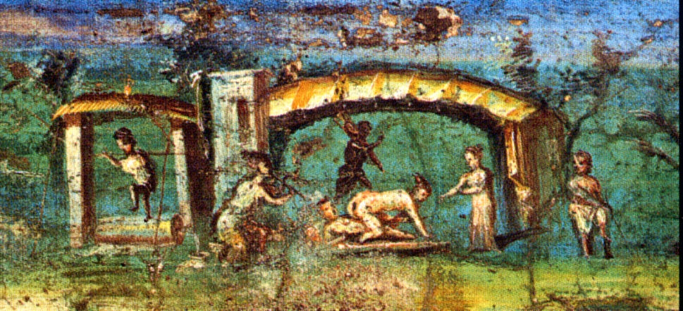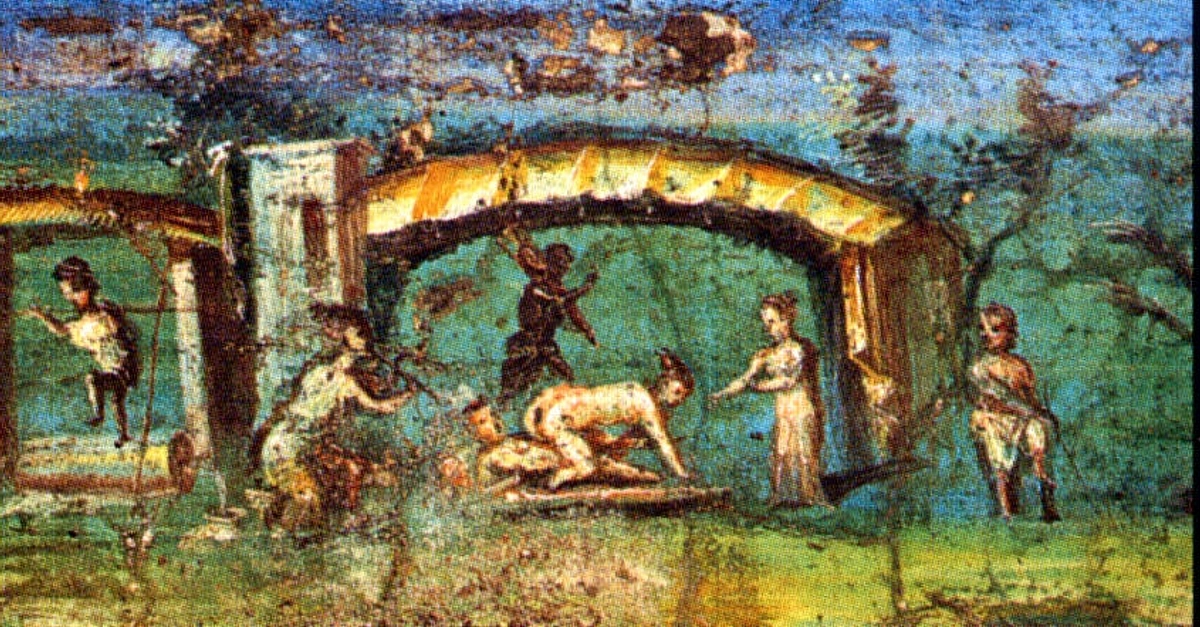 This 1st Century CE Roman fresco portrays an erotic scene in a Nile setting. The fresco itself comes from the "House of the Ephebus" in Pompeii and it currently resides at the National Archaeological Museum of Naples in Italy.