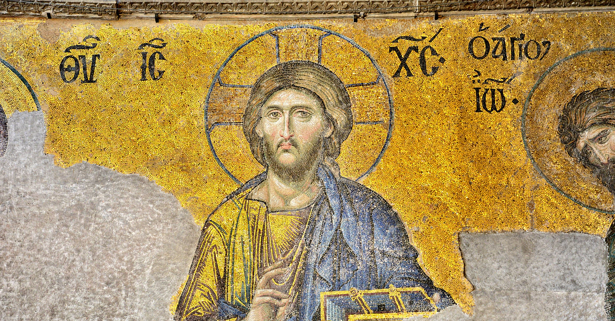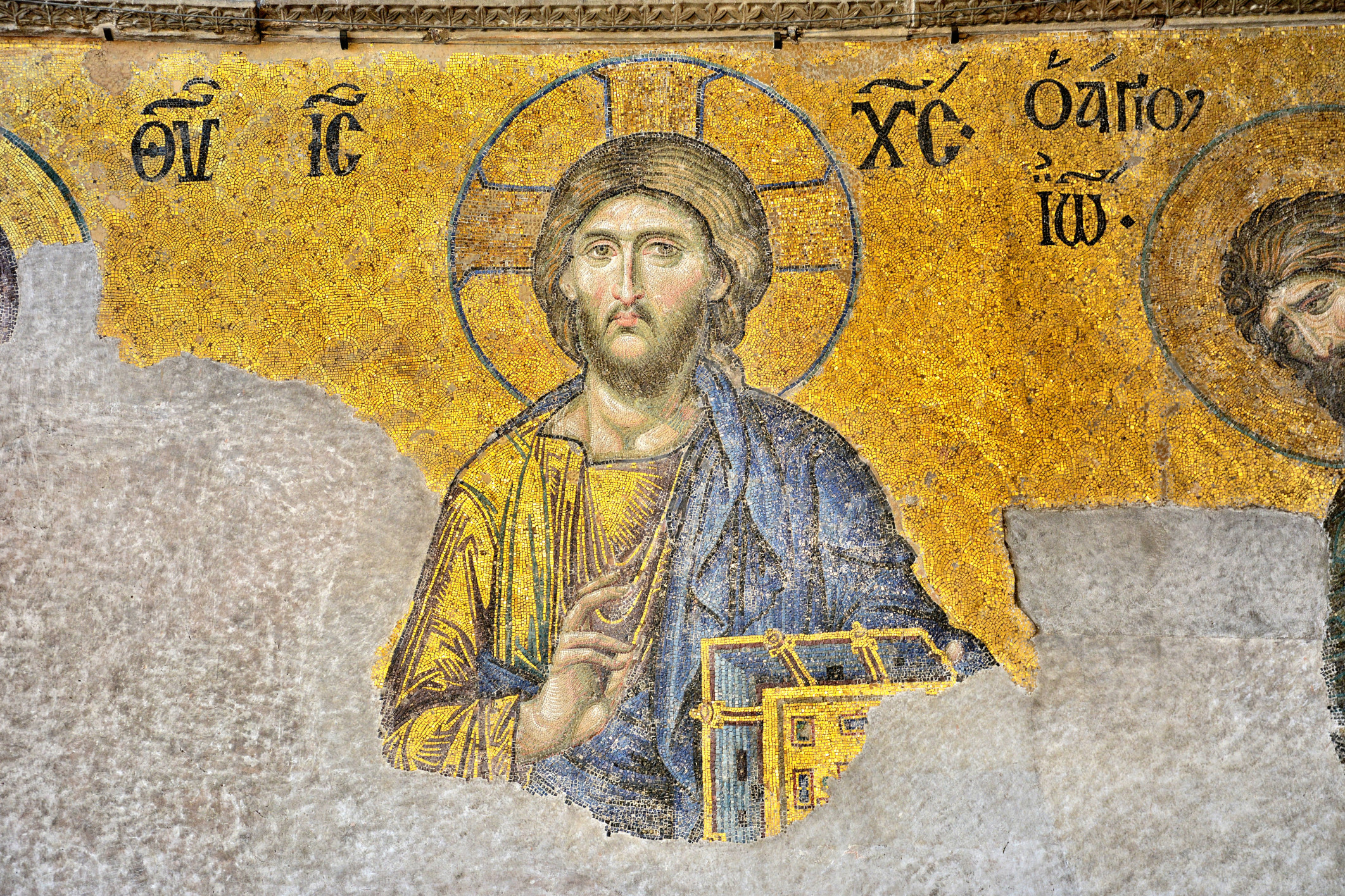 Jesus Christ detail, Deesis Mosaic, 13th century CE, Hagia Sophia, Istanbul, Turkey. The mosaic is accepted as a pioneer of the Renaissance Art