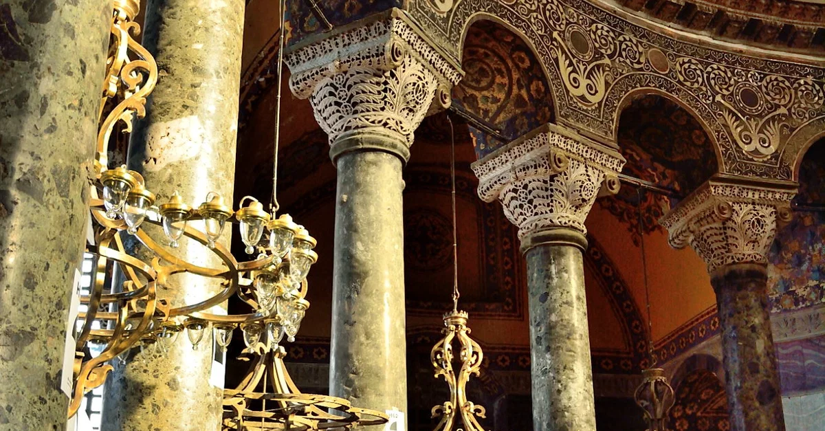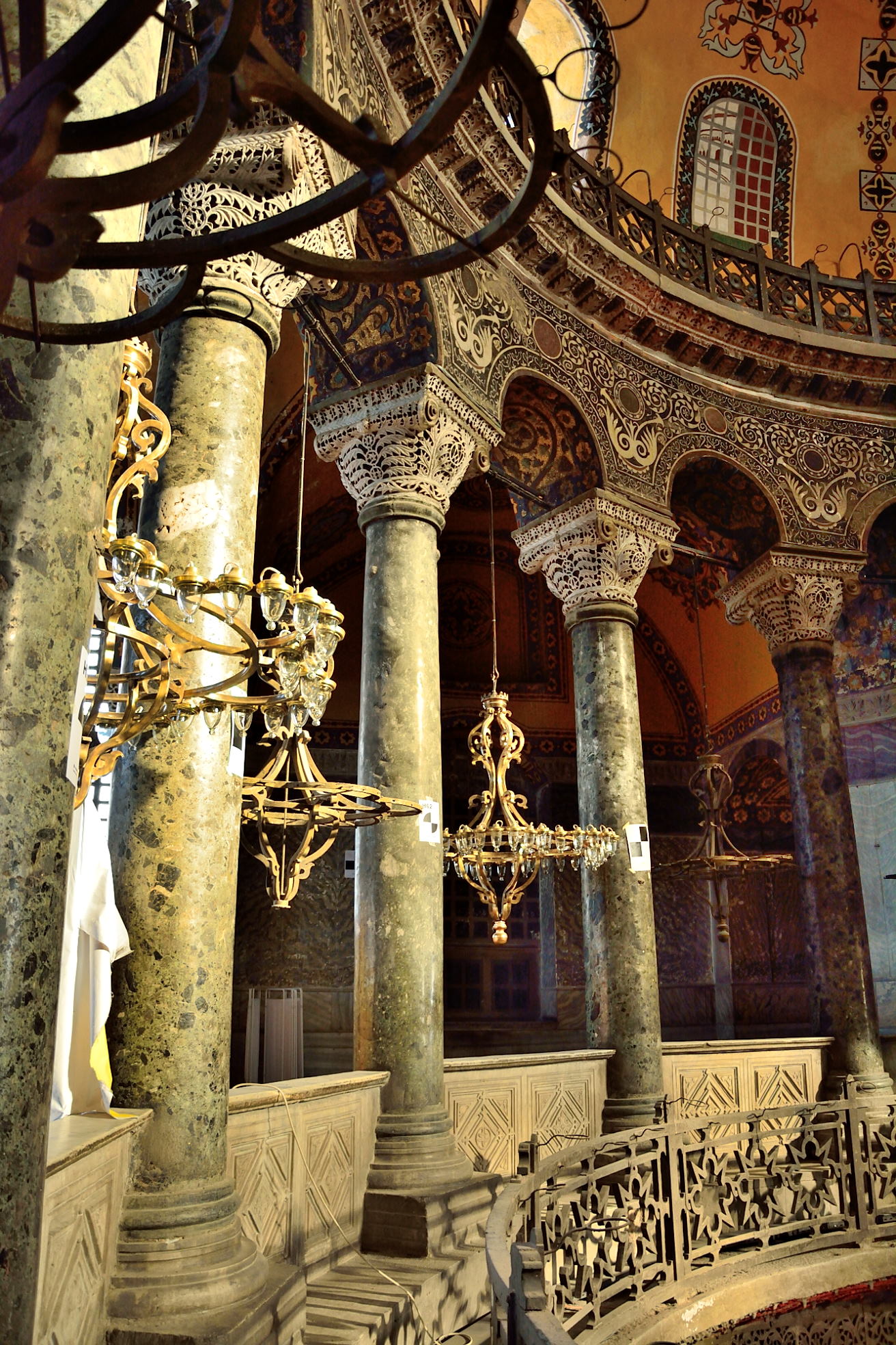 Columns of Hagia Sophia, 6th century CE, Hagia Sophia, Istanbul, Turkey. In Hagia Sophia, there are 140 monolithic columns which were brought from different places of the world.