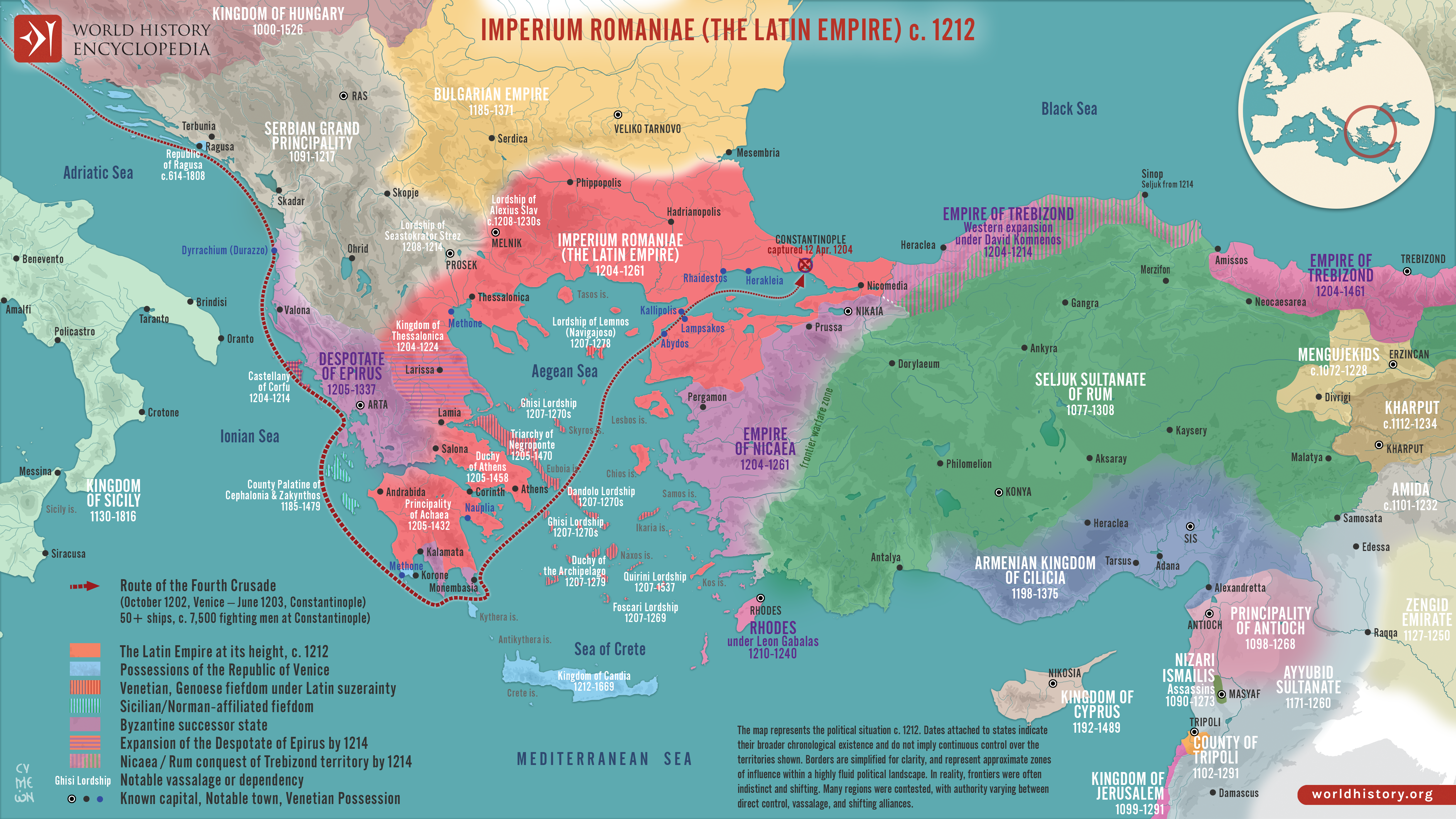 Netchev, Simeon. "Map of the Latin Empire: A Crusader State in Constantinople: Imperium Romaniae and the Fragmentation of Byzantium." World History Encyclopedia, April 07, 2026. https://www.worldhistory.org/image/8048/map-of-the-latin-empire-a-crusader-state-in-consta/.