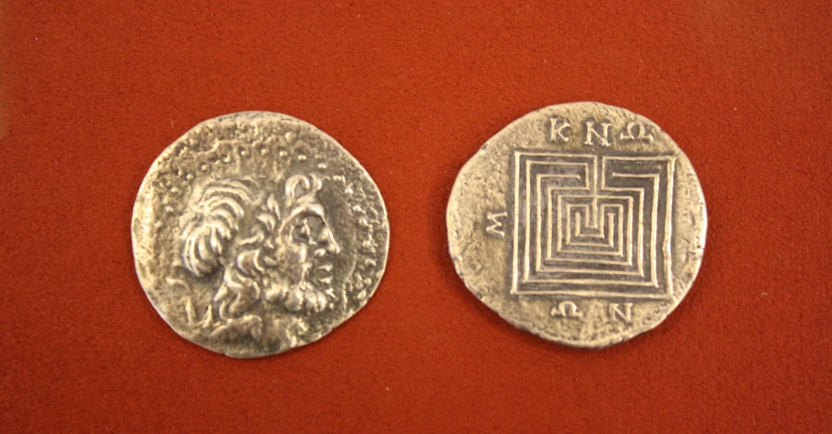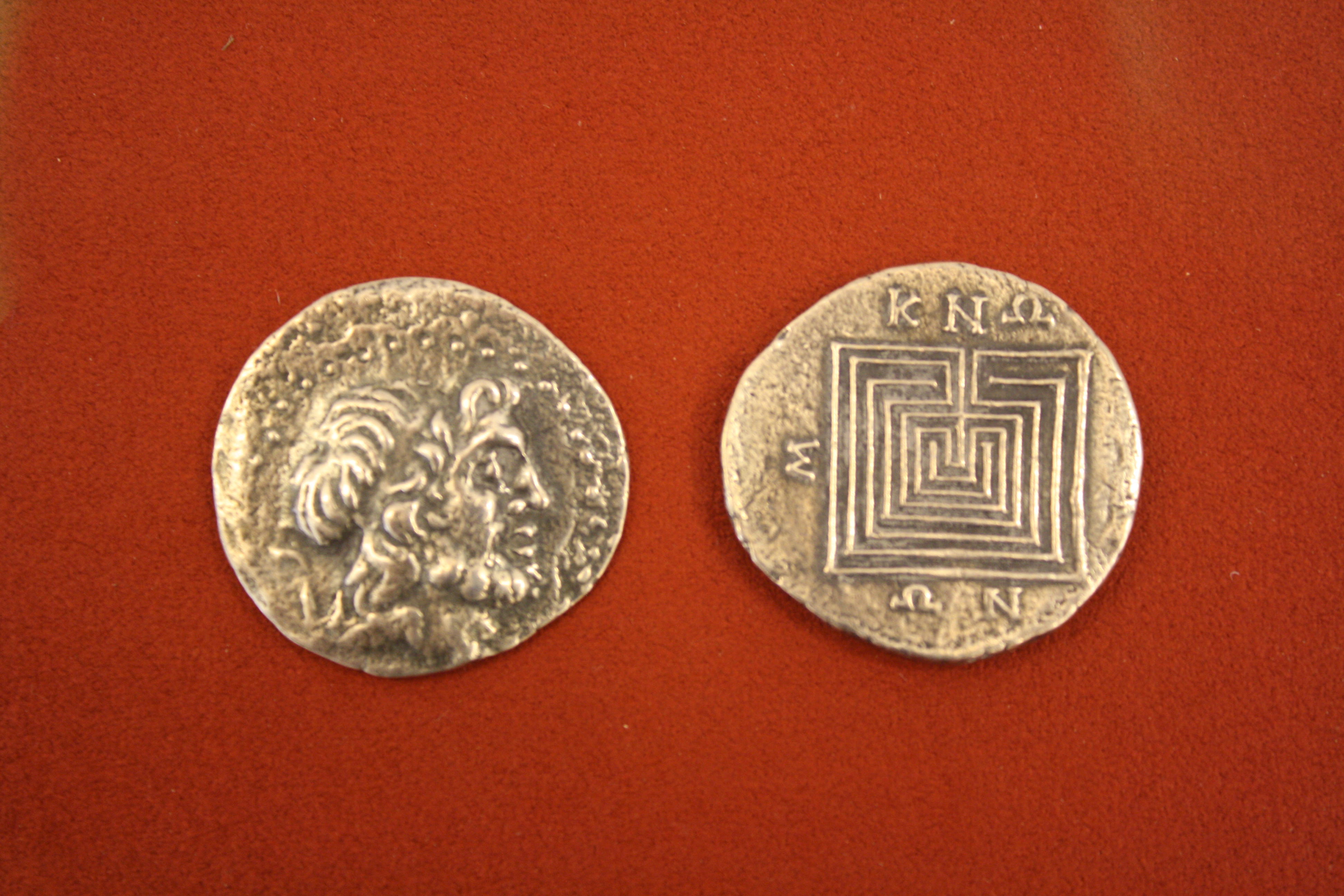 Silver tetradrachm from Knossos, Crete, 2nd or 1st century BCE. O: Head of Zeus. R: Labyrinth.