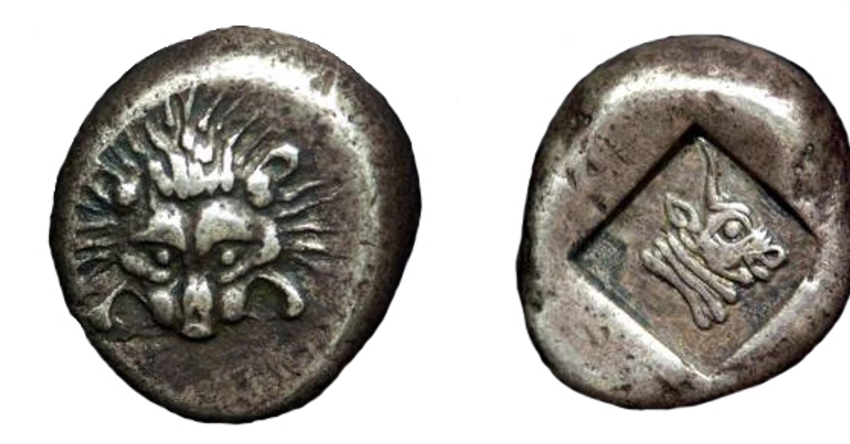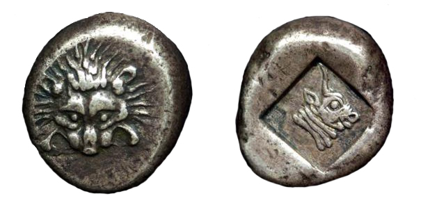 Silver. Weight – 5,52 gr. d=17/19 mm. Obverse: Lion’s head facing. Reverse: Bull’s head to the right in quadratum incusum. Mint: Phasis. Nominal: Siglos of the Persian system Date: 5th c. BCE.